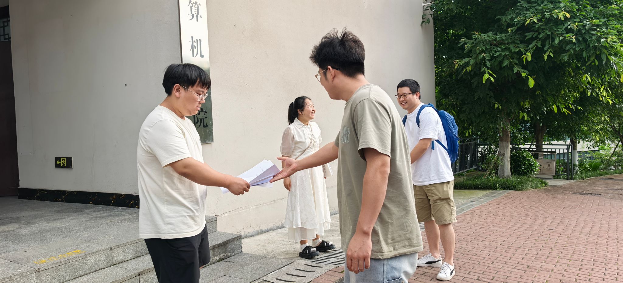 当日上午,勇者楼门前阳光和煦,智能科学教研室的教师与学生志愿者早早集结,成为校园里一道 “反诈风景线”。他们手持精心设计的宣传传单,主动向过往师生介绍反诈要点。