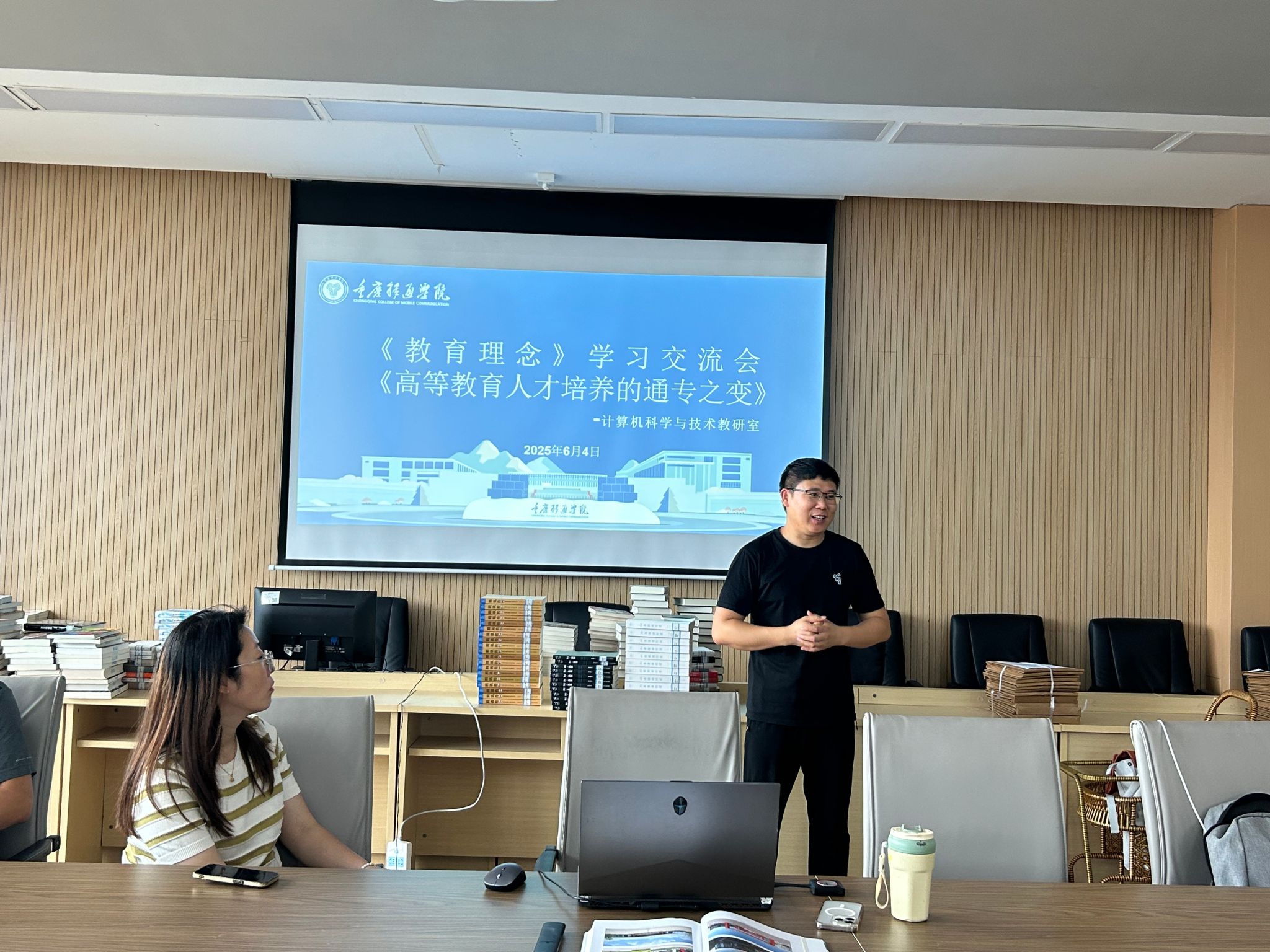 2025年6月4日,计算机科学与技术教研室在勇者楼301成功举办了《教育理念》学习交流会。会议由教研室主任卢星儒主持,全体教师积极参与,围绕新时代教育理念的核心内容展开深入讨论,为全面提升教育教学质量奠定基础。
