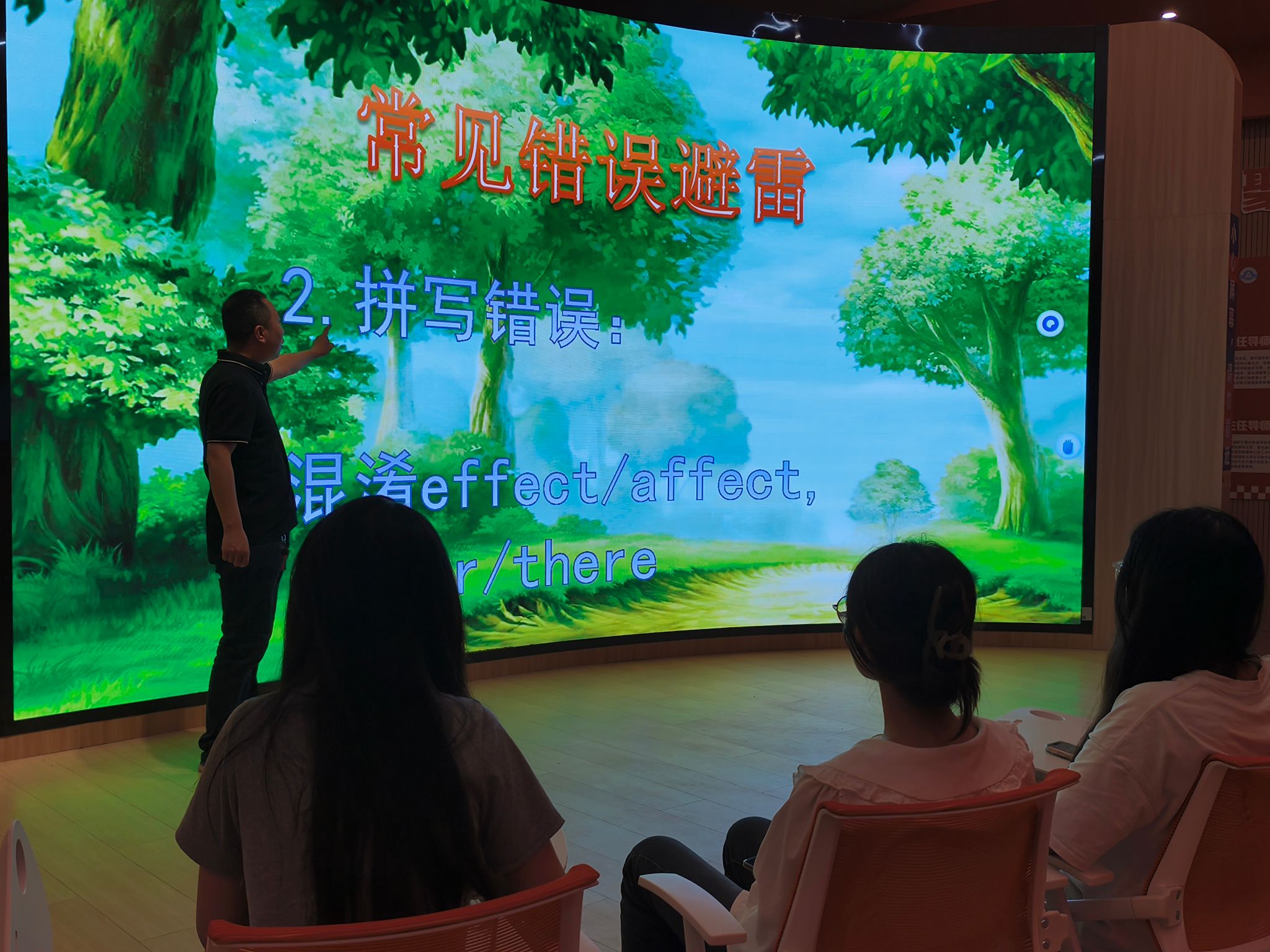 徐老师首先通过PPT展示了英语四级作文的评分标准,让学生们清晰地了解到什么样的作文能够获得高分。他强调,一篇优秀的四级作文不仅要有清晰的逻辑结构,还要有丰富的词汇和准确的语法表达。为了让学生们更好地理解,徐老师结合具体的范文,详细分析了文章的开头、中间段落和结尾的写作方法,以及如何运用连接词和过渡句使文章更加连贯流畅。