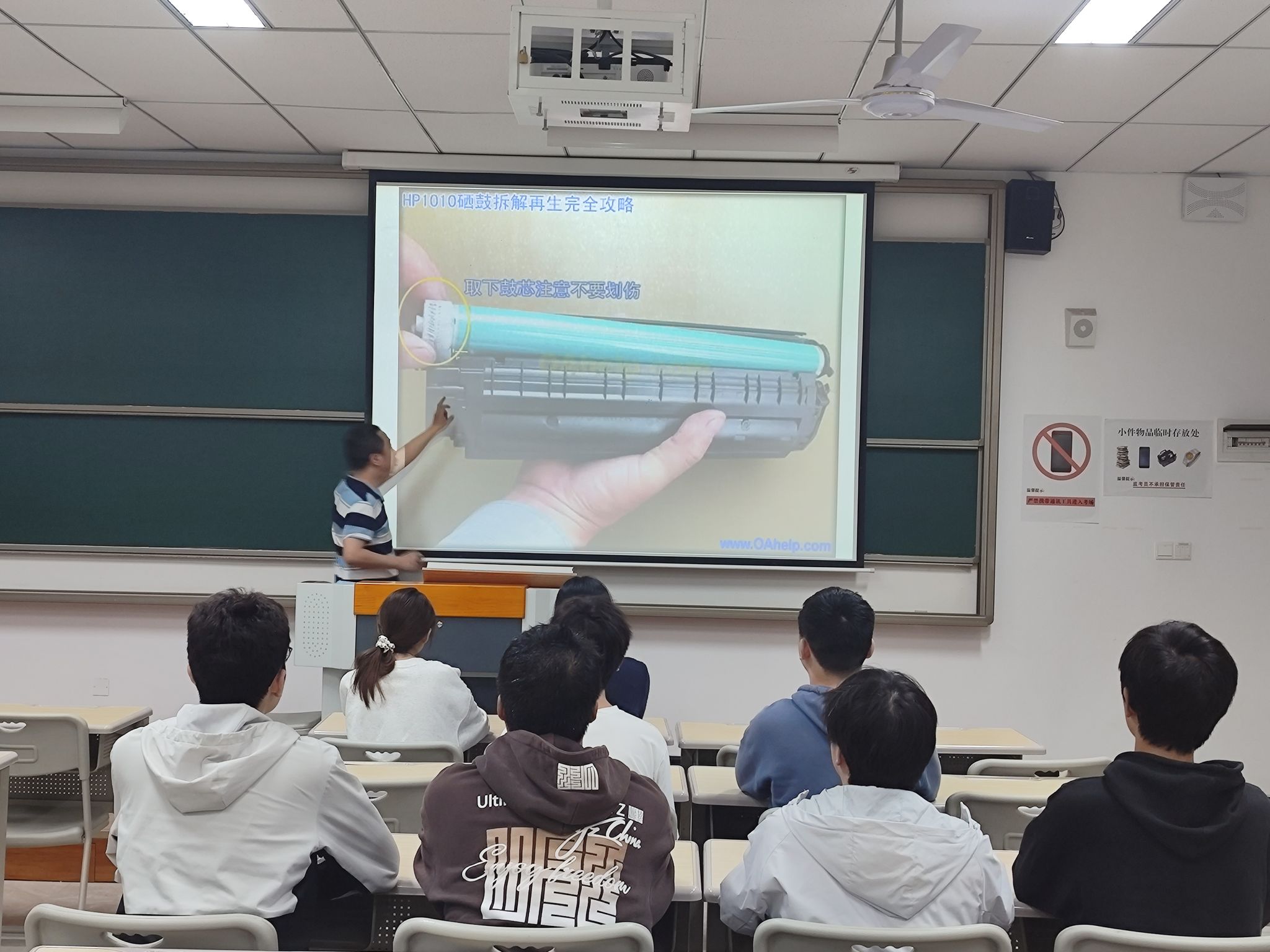 培训在仁者楼教室内进行,虽然没有实物打印机,但徐老师通过精心设计的PPT,将复杂的打印机理论知识拆解成五大板块,循序渐进地引导学生构建知识体系。