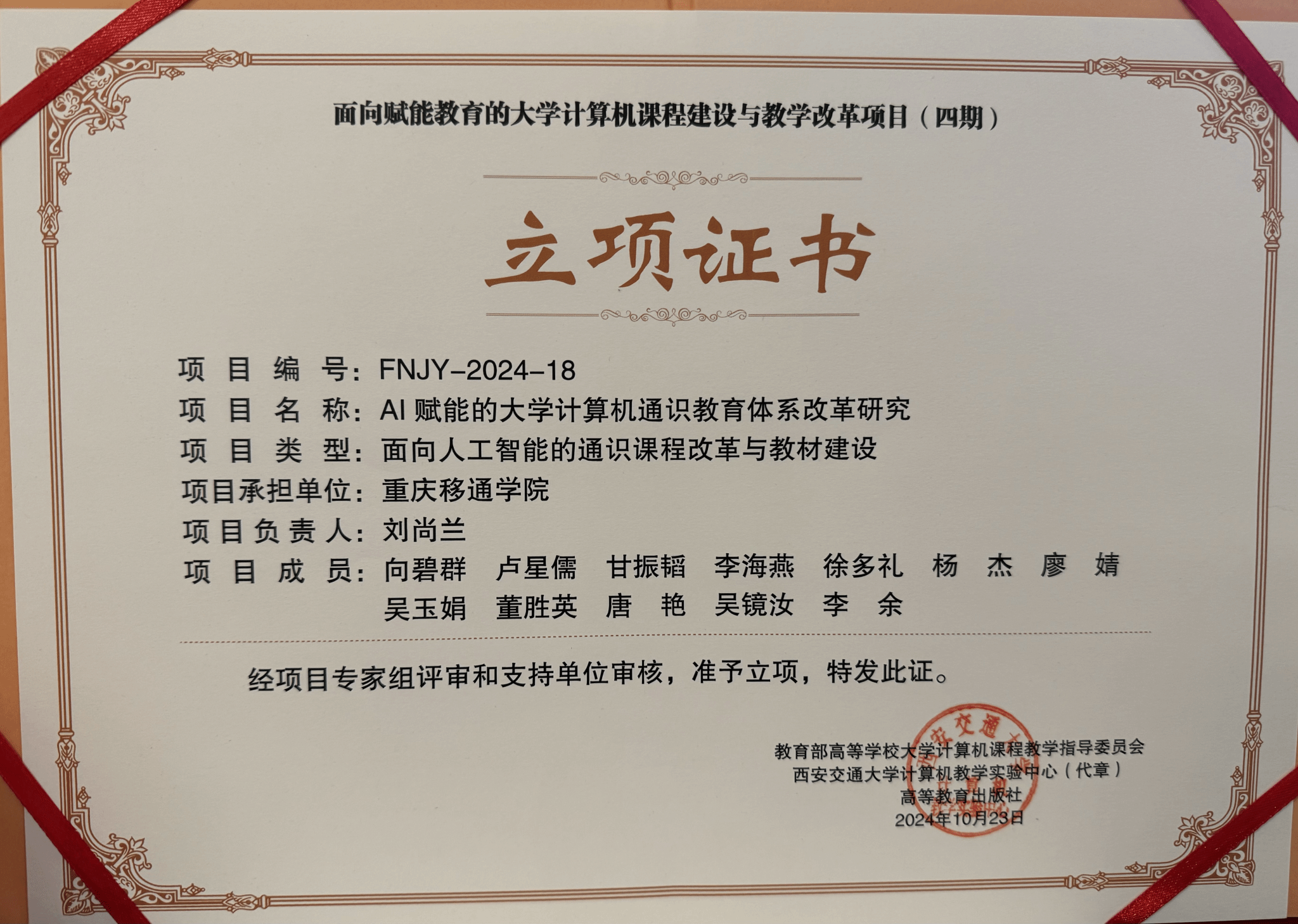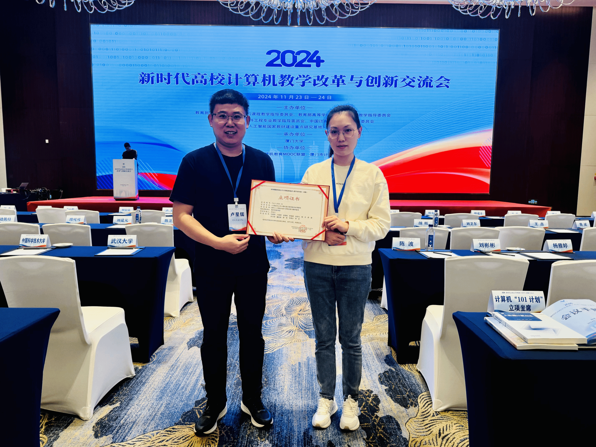 卢星儒、刘尚兰两位老师凭借在计算机教学领域的积极探索与卓越表现,受邀出席了在厦门举办的教育部立项颁奖仪式,并参加了“2024新时代高校计算机教学改革与创新交流会”。此次交流会汇聚了来自全国各地高校计算机教育领域的专家学者、一线教师,大家齐聚一堂,共同探讨计算机教学改革与创新的前沿话题。在交流会上,两位老师不仅见证了众多优秀教学成果的荣耀时刻,还积极参与各类研讨活动,与同行们进行了深入的交流与思想碰撞。