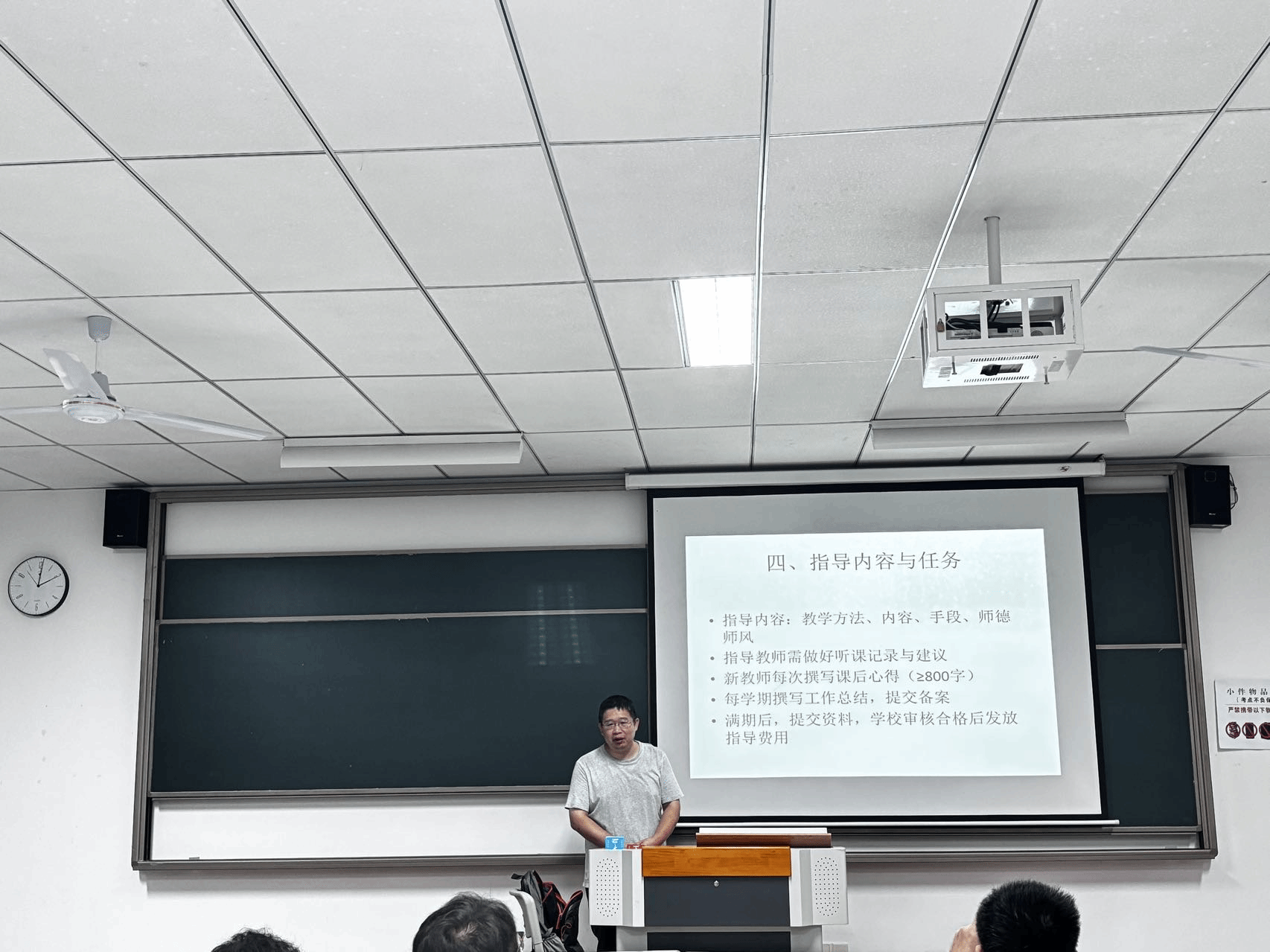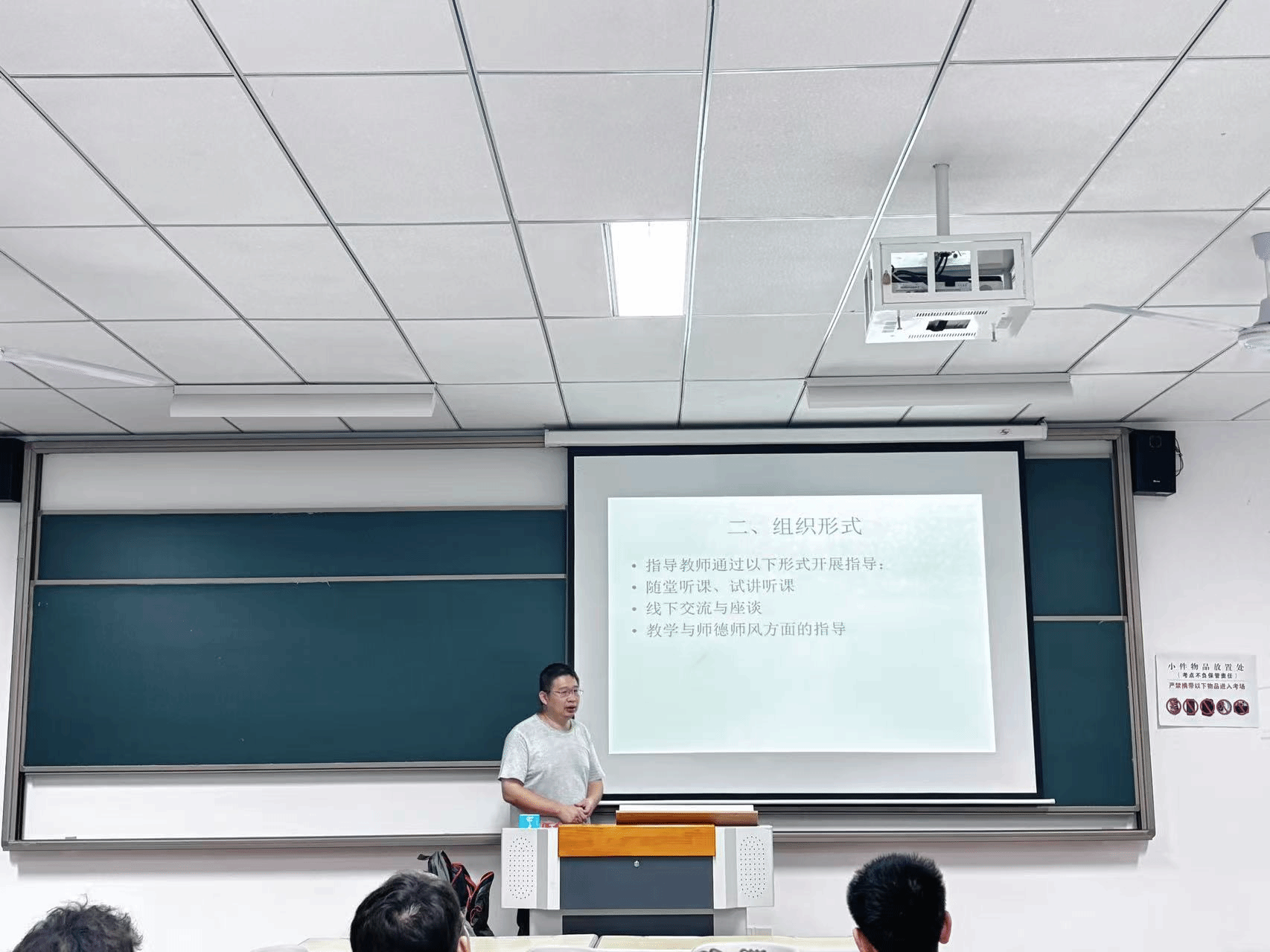 在组织形式方面,王主任讲到指导教师将通过随堂听课、试讲听课、线下交流与座谈等多种形式开展指导工作,全面涵盖教学方法、教学内容、教学手段以及师德师风等方面。他指出,指导教师要充分发挥示范引领作用,新教师要积极主动学习请教,共同营造良好的教研氛围。