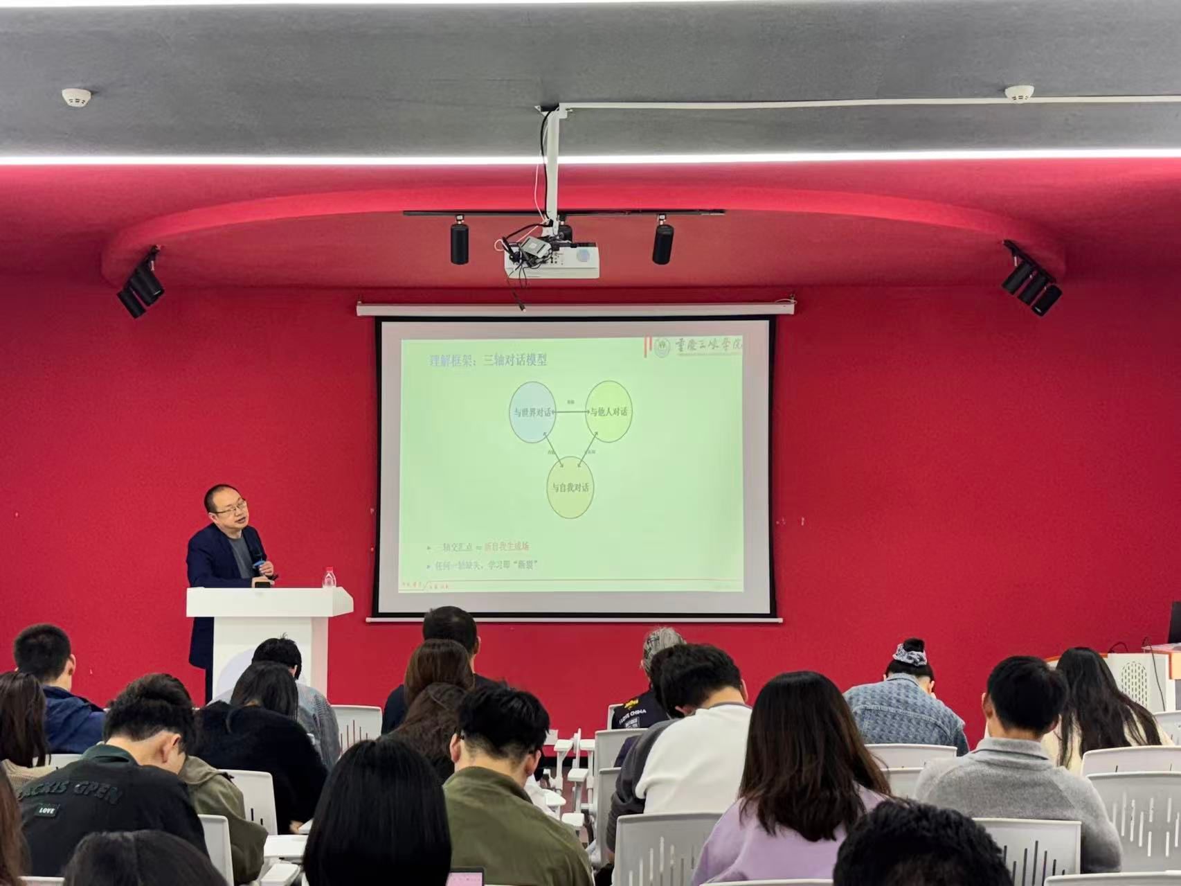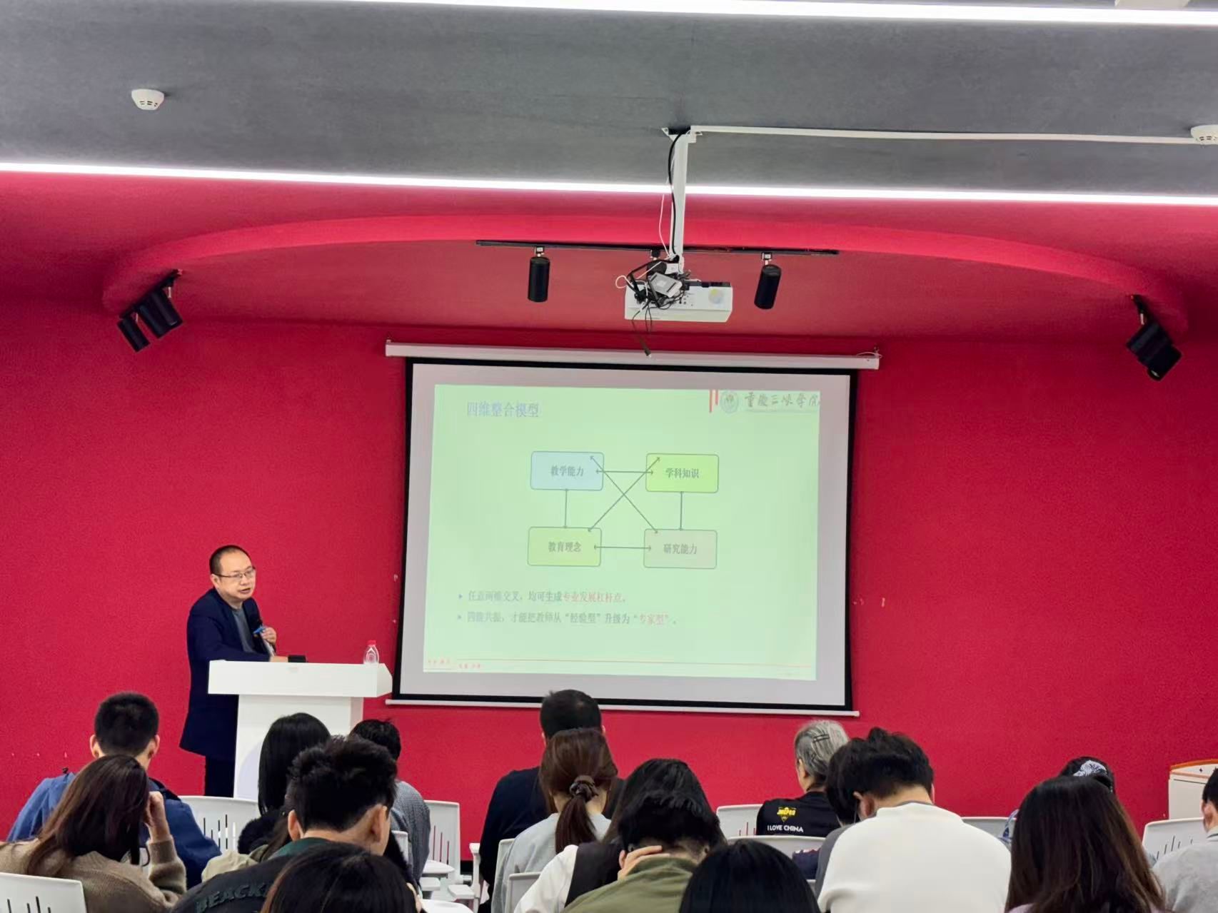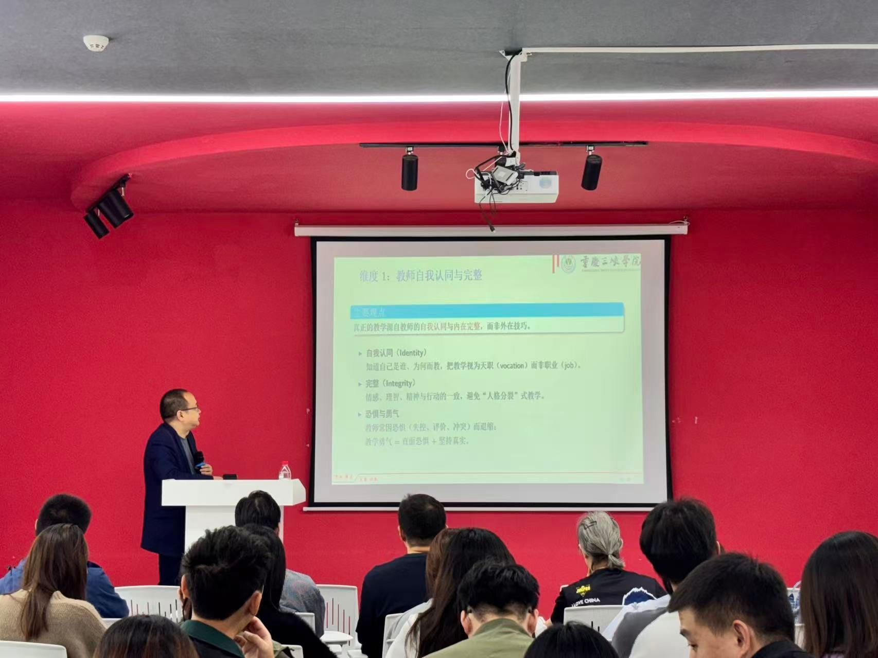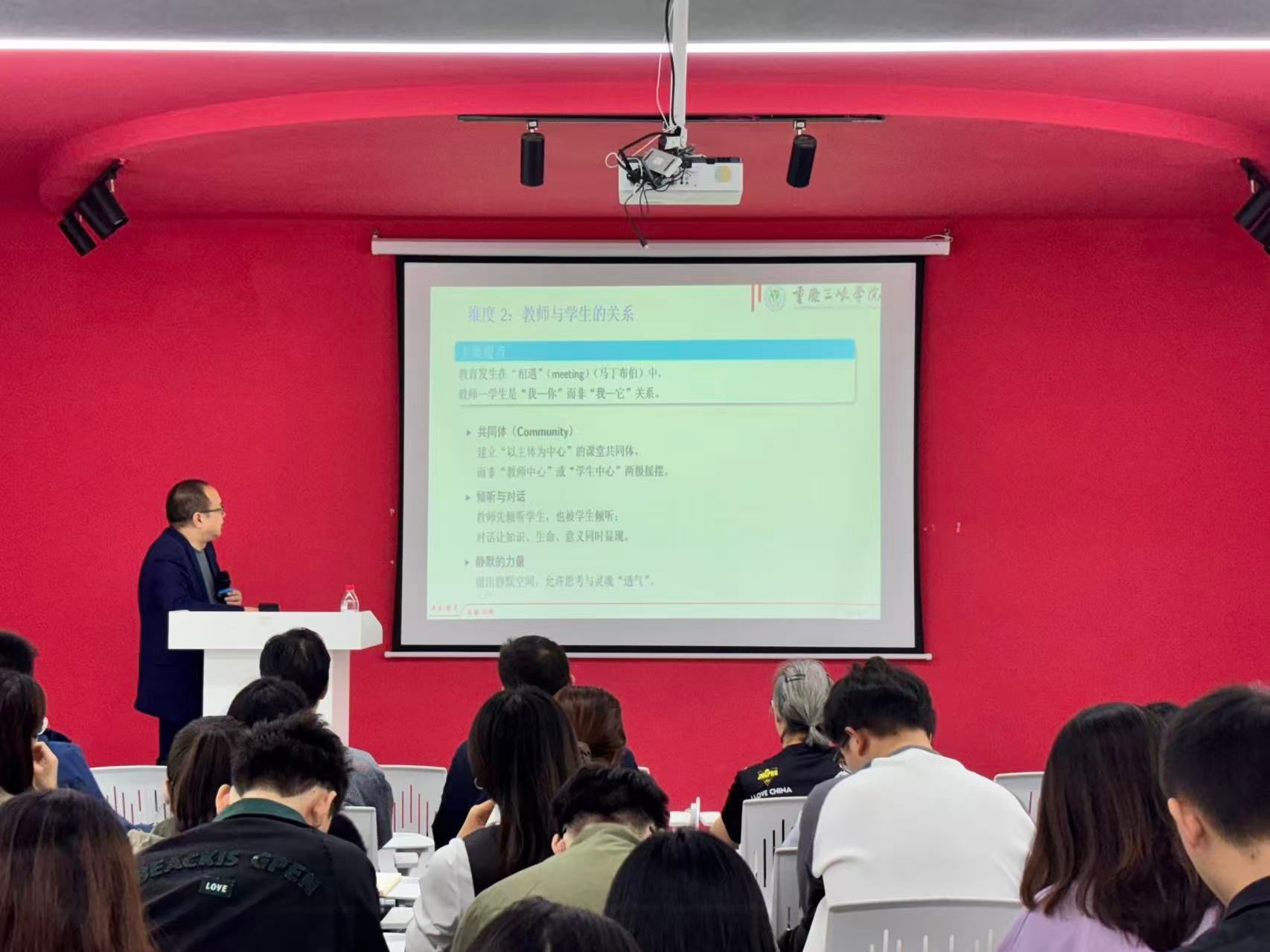 讲座伊始,余红宴博士首先进行了简单的自我介绍,之后再以帕克·帕尔默的经典著作《教学勇气:漫步教师心灵》为理论基石,引领教师们进行了一场深刻的心灵漫步。在此系统阐述了构建卓越教学的三大核心关系,指出真正的教学勇气由来。