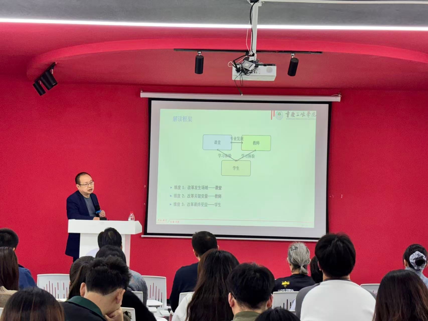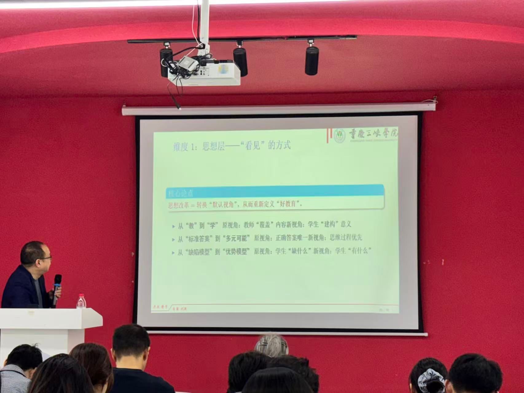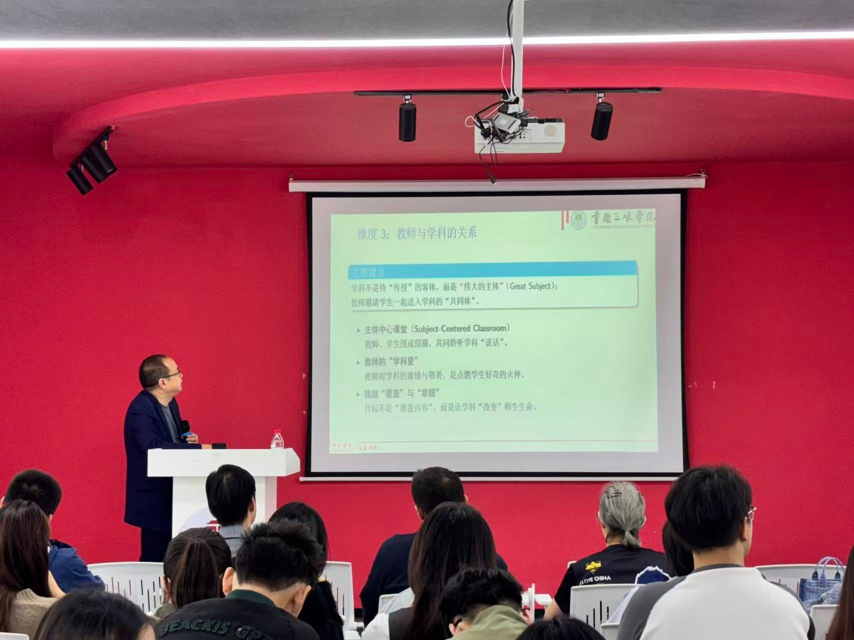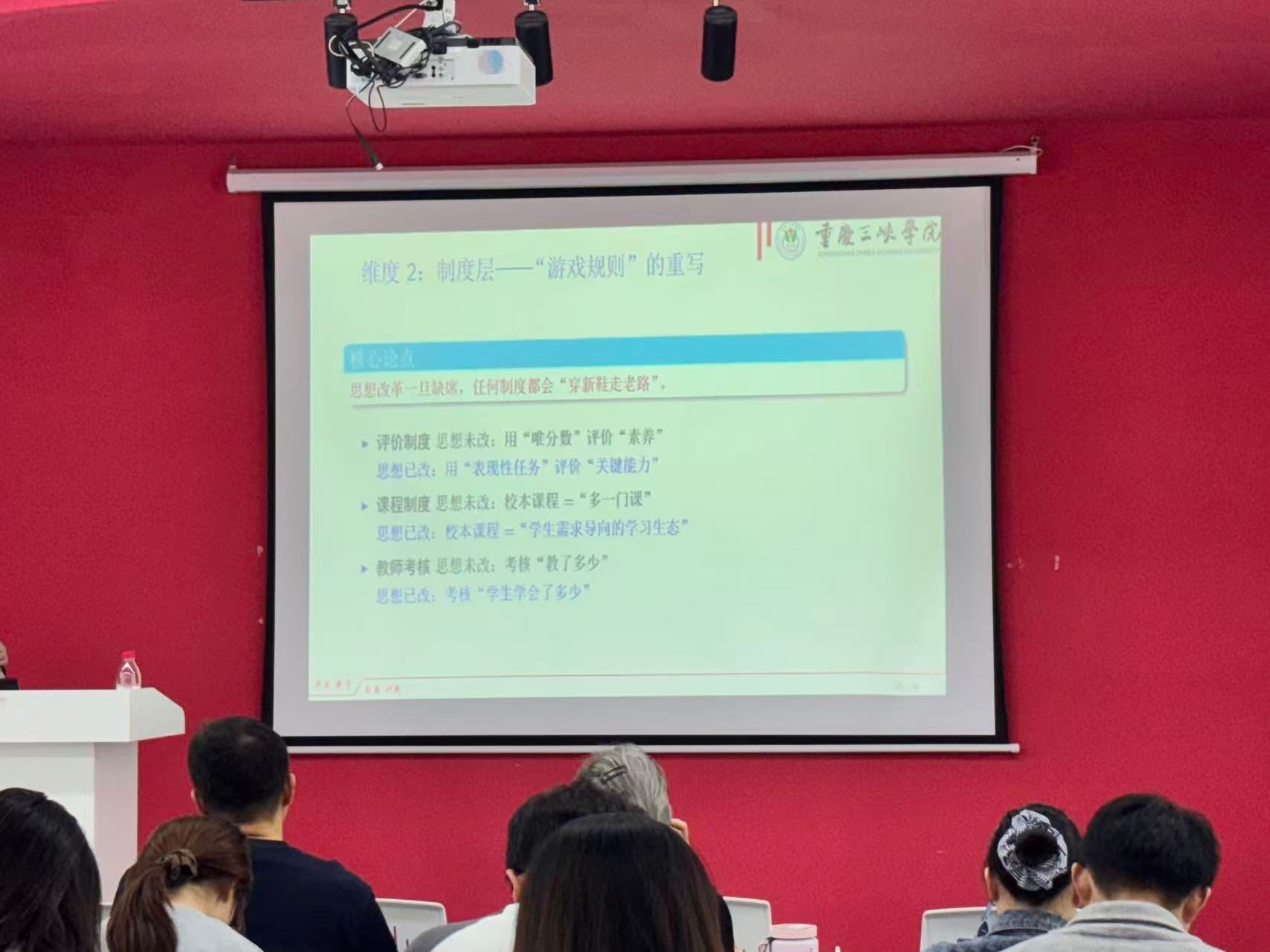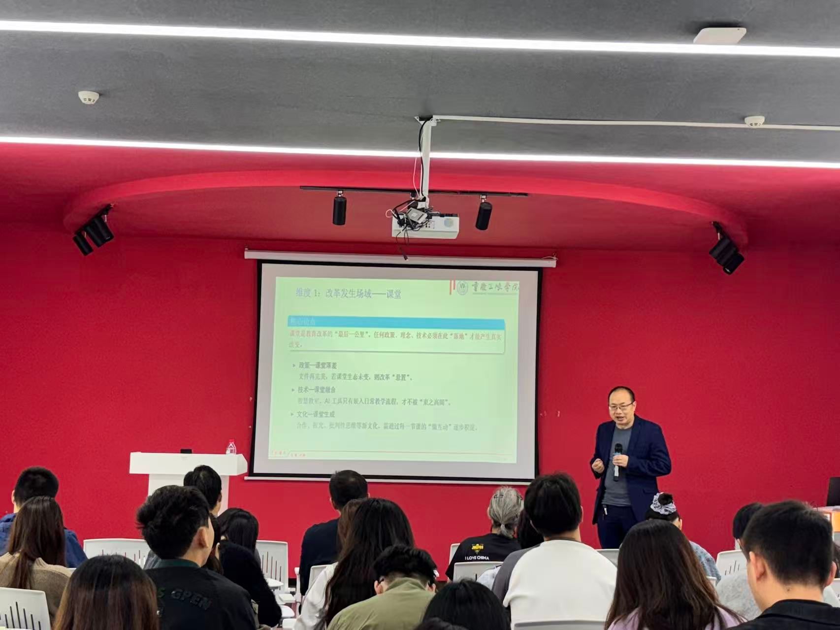 为主动应对人工智能技术发展对教育领域带来的深刻变革,全面提升教师教学素养与育人能力,2025年10月22日,计算机学院特邀重庆三峡学院余红宴博士莅临我院,在玉棠书院-TalkKing演讲厅为全体教职工带来了一场题为“人工智能时代的教育教学变革”的专题讲座。本次活动由徐多礼主任主持,计算机学院全体任课教师及辅导员共同参与。