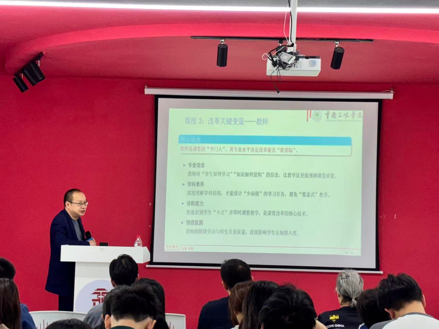 余博士通过对“教育改革始终发生在课堂上”与“教师的专业发展是重中之重”这两大命题的深度解读,系统论述了成功教育变革所依赖的三个关键维度,揭示了课堂、教师与学生三者间环环相扣的生态关系。