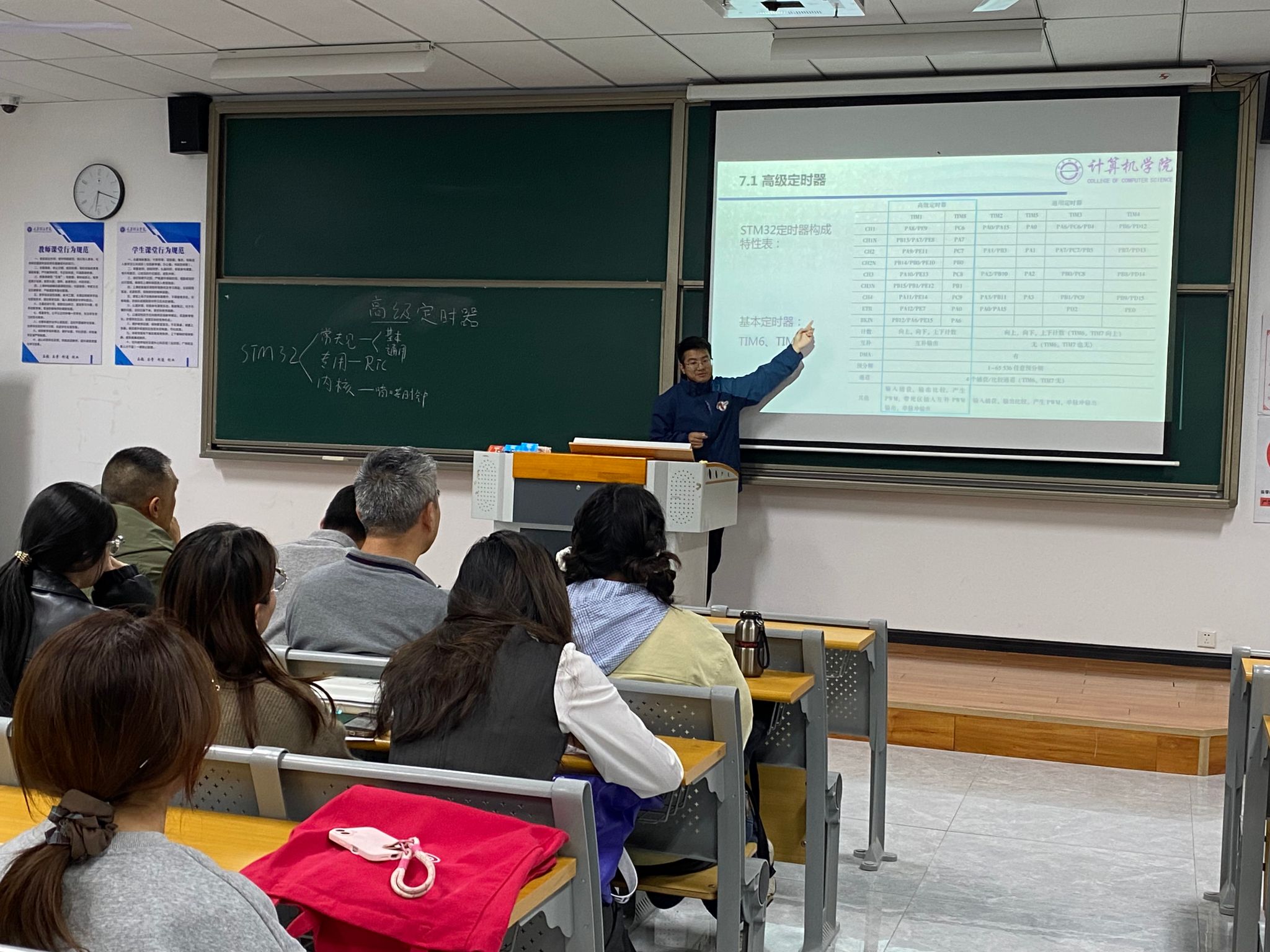 压轴出场的是吴优老师,他深入讲解了《嵌入式应用技术开发》中的“高级定时器及其作用”。他从定时器的基本概念入手,通过清晰的流程图和时序波形图,直观展示了高级定时器的内部结构与工作机制,并具体阐述了其在精确计时、事件计数等功能实现中的核心作用。讲解过程逻辑清晰、图文并茂,使学生对这一关键模块形成了系统而扎实的认识。