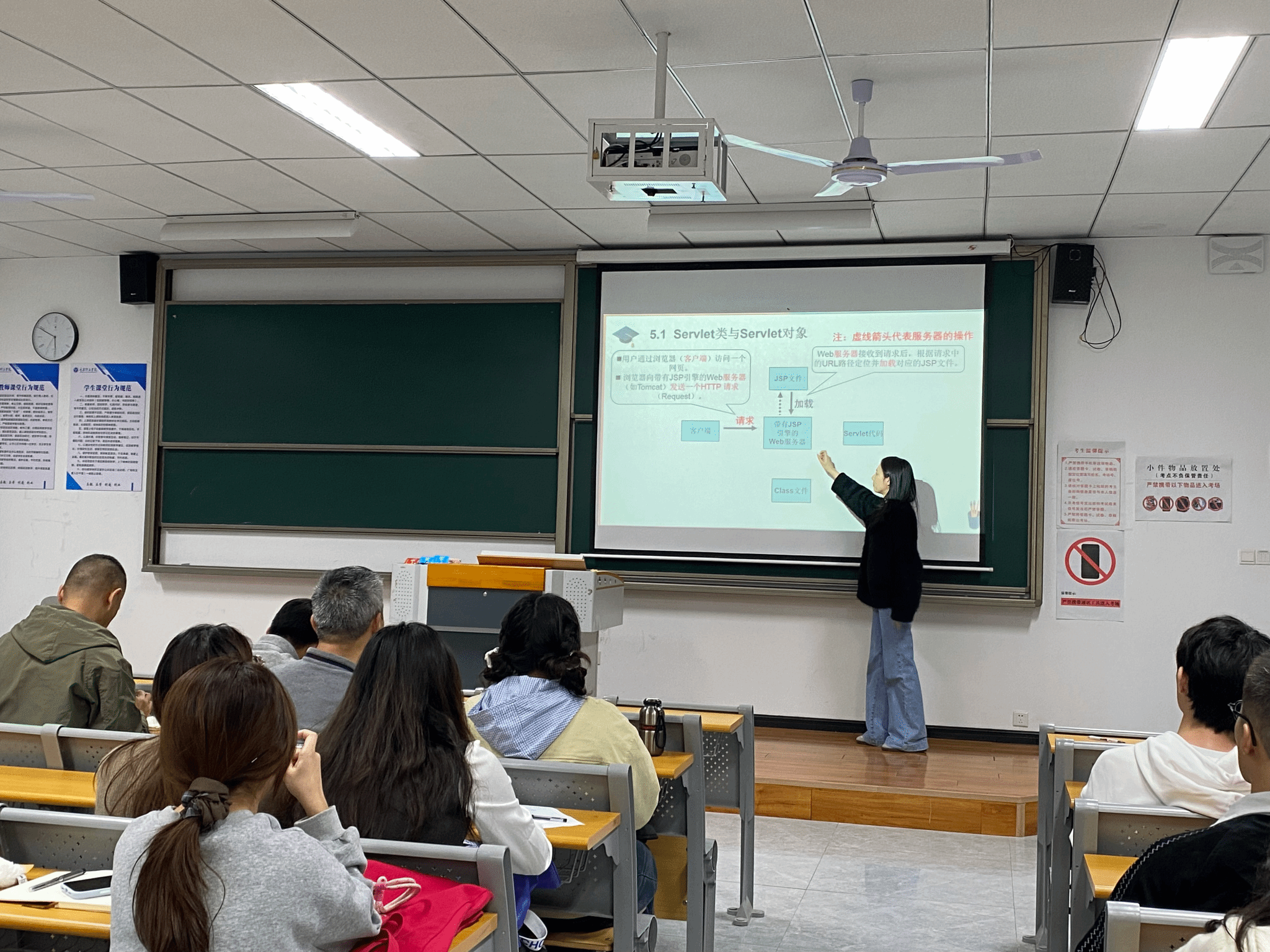 随后的磨课环节,五位教师依次进行了教学展示。首先登场的是刘怀宇老师,她为大家带来了《Web后端程序设计》的课程片段。刘老师通过一个贴近实际的应用场景,深入浅出地讲解了后端开发的关键技术与流程,逻辑清晰,代码演示流畅,展现了扎实的专业功底。