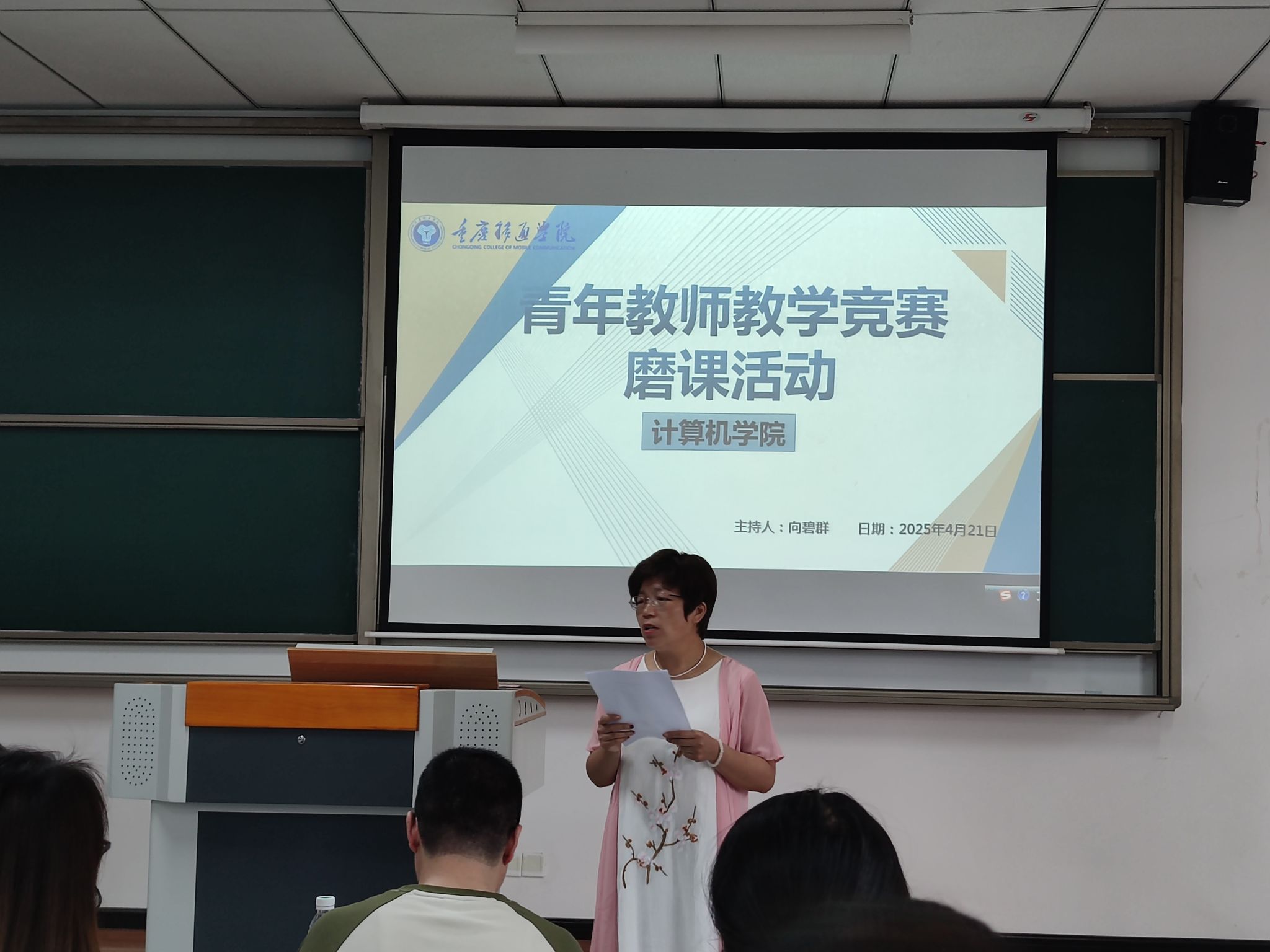 为深入贯彻落实学校《关于开展2025年青年教师教学竞赛活动的通知》精神,进一步提升青年教师教学能力,计算机学院于2025年4月21日在勇者楼403教室组织开展青年教师教学竞赛决赛前磨课活动。本次活动由计算机学院向碧群院长主持,邀请教学副院长林泽金、计算机科学与技术教研室主任卢星儒、智能科学与技术教研室主任徐多礼、计算机基础教研室主任王强、计算机科学与技术专业负责人甘振韬老师以及智能科学与技术专业负责人李海燕老师担任评委,周海与刘尚兰两位老师参与磨课。
