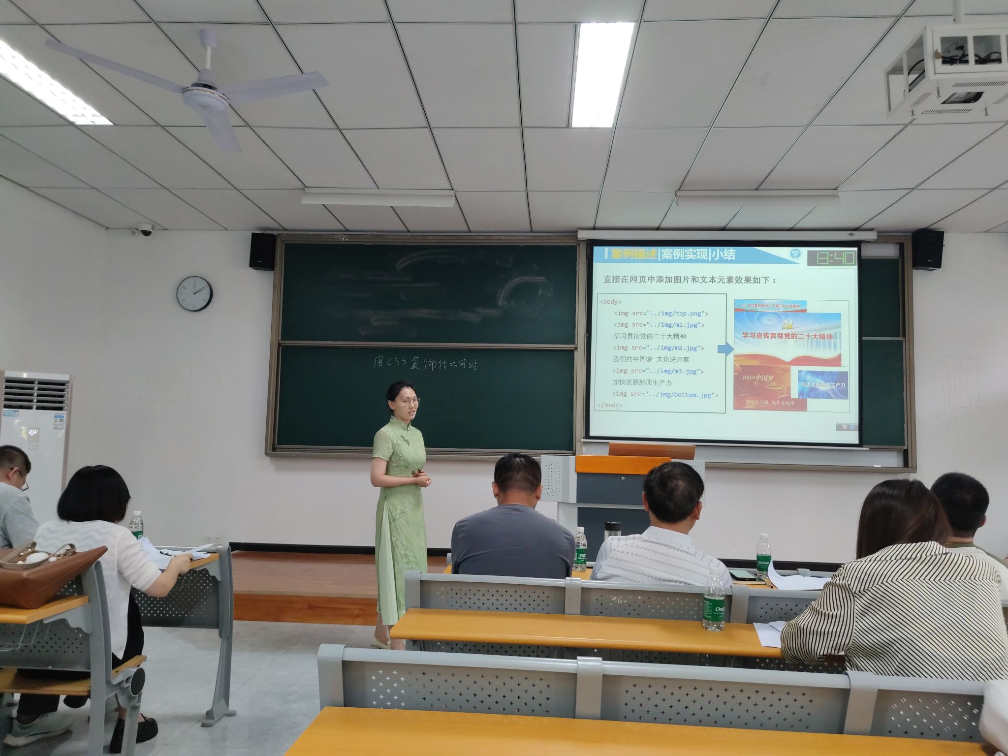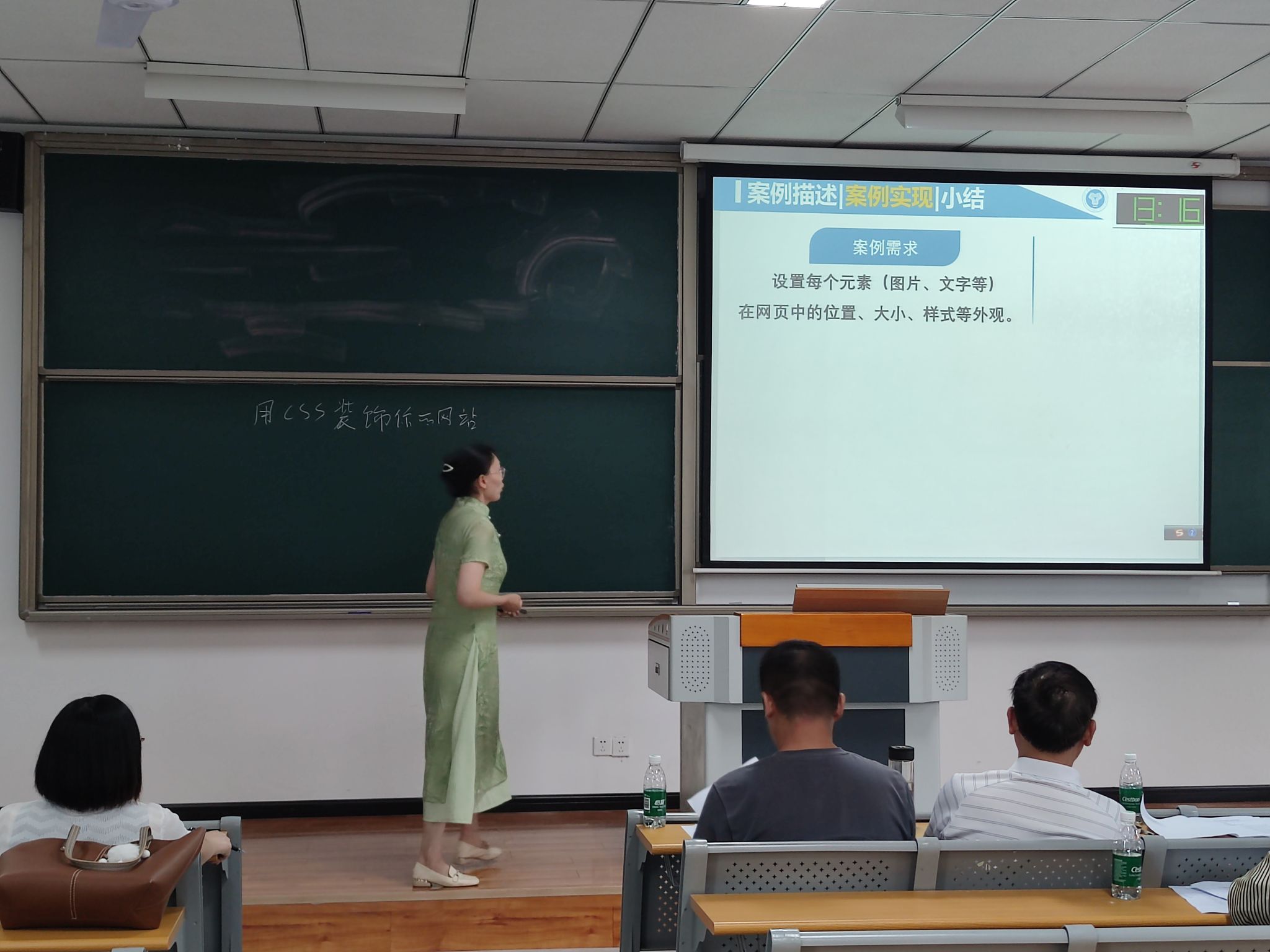 而刘尚兰老师则围绕《用CSS装饰你的网站》中的“盒子模型”概念展开教学。以快递纸盒作类比,结合“学习强国”网页重构案例,将抽象的CSS盒子模型具象化呈现。整个授课过程逻辑清晰、语调温婉,通过逐步调整五张图片样式,最终还原学习强国网页效果,既展示了专业知识,又巧妙融入了思政元素。