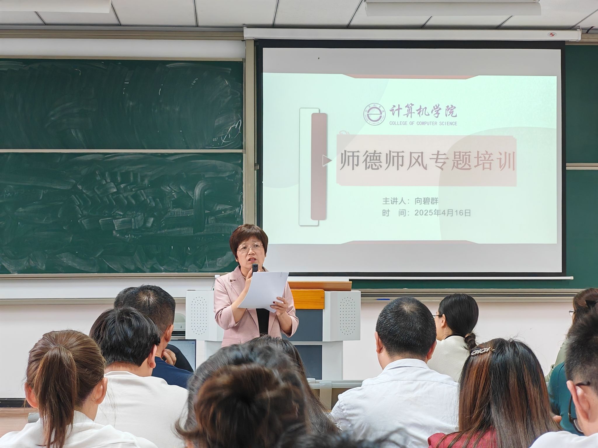 培训最后,向碧群院长强调了师德师风建设对于教师职业发展和学生成长的重要性,她指出:“希望通过本次专题培训,大家能够深刻认识到师德师风的重要性,并在今后的教学工作中践行今天所学的内容,以更加饱满的热情和更加严谨的态度投入到教育教学工作中,为培养更多优秀的计算机专业人才而努力奋斗。”