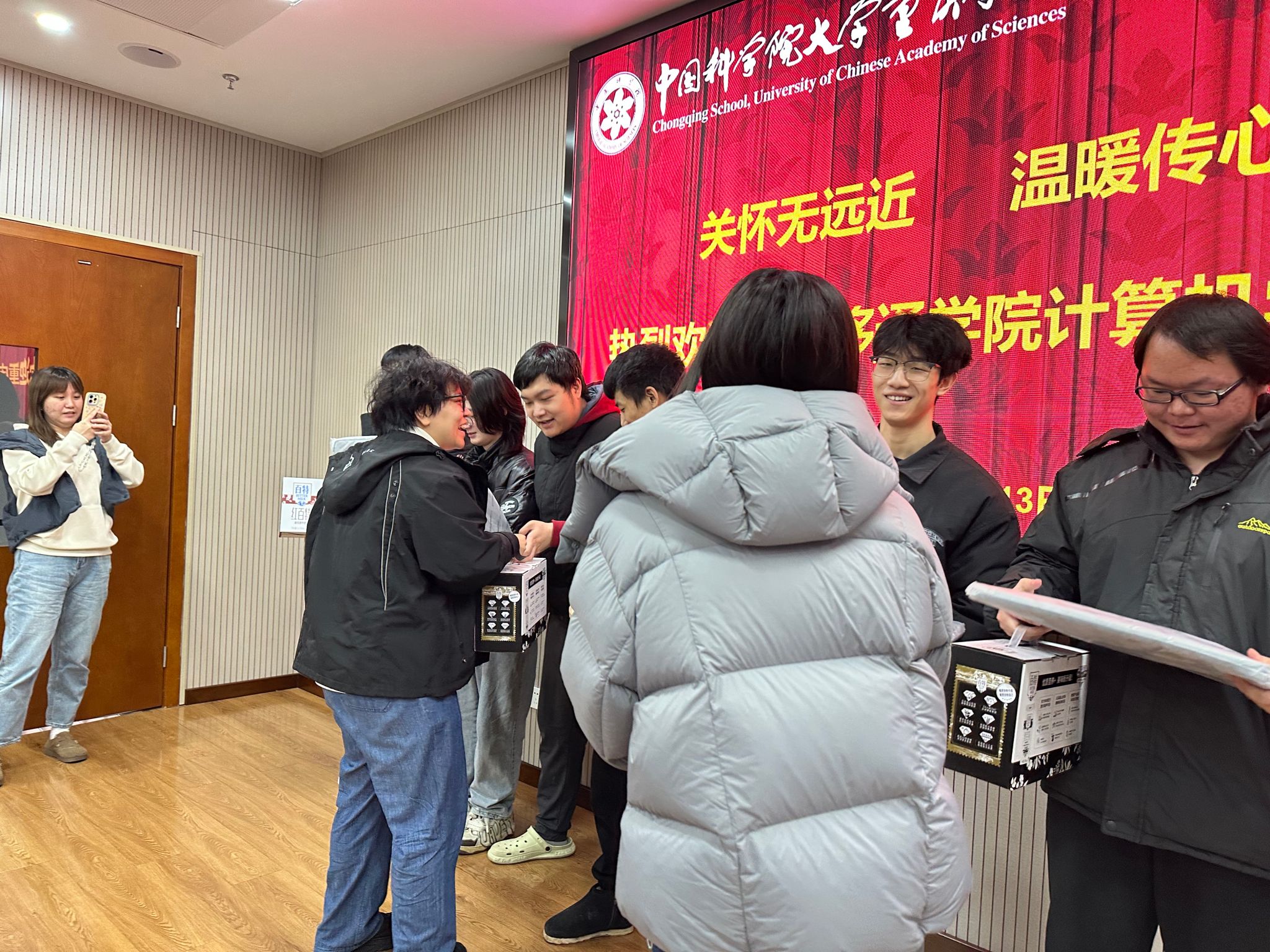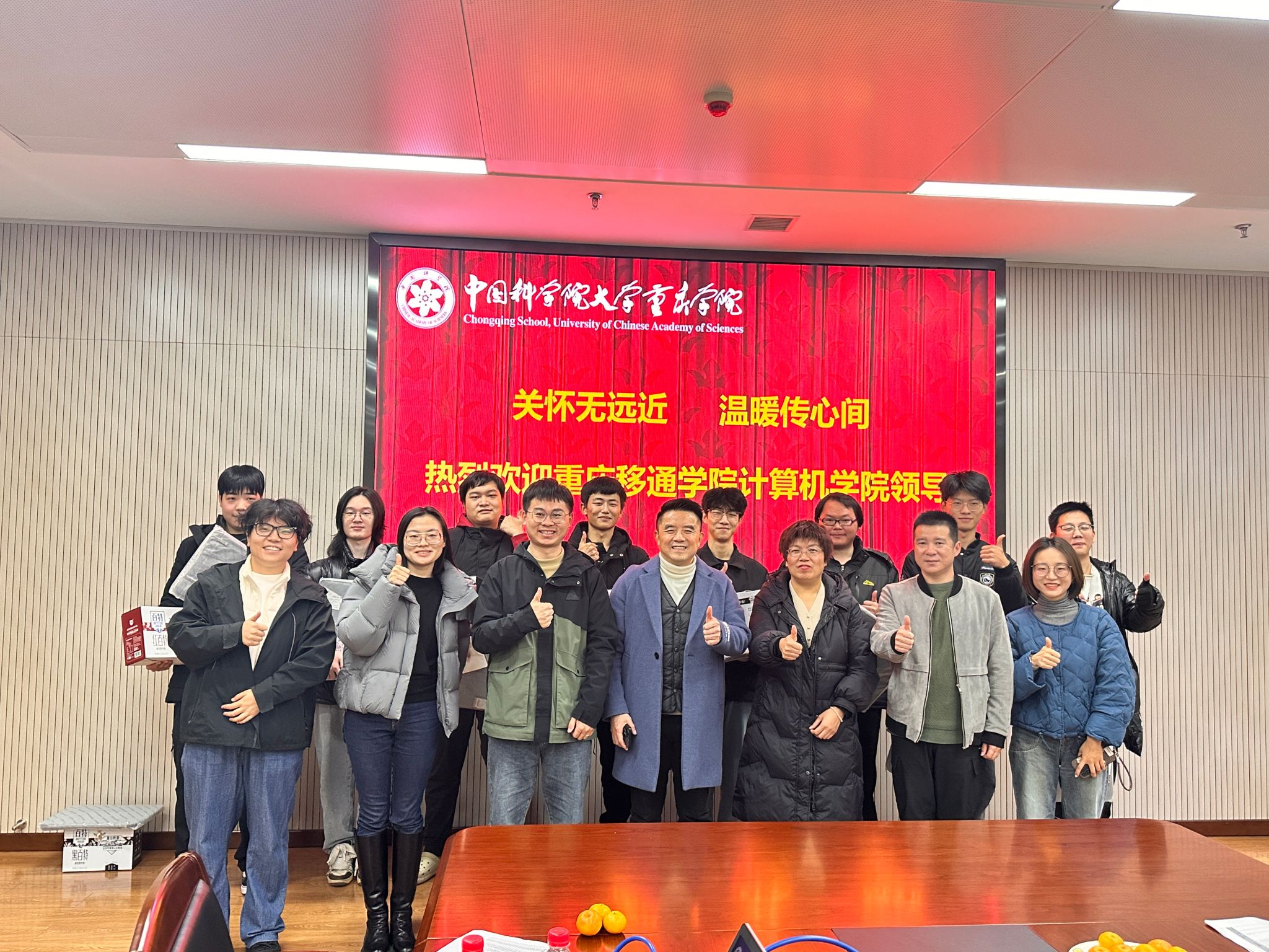 2024年12月13日,星期五,重庆移通学院计算机学院的领导团队专程前往中国科学院大学重庆学院(以下简称“国科大”),开展了一次充满关怀与温暖的走访慰问活动。此次活动旨在关心和支持在国科大进行深造学习的“菁英班”学员们,传递来自母校的问候和鼓励。参与此次慰问活动的有计算机学院主持工作副院长向碧群、学工副院长周俊、就业创业办公室主任王伟孪、智能科学与技术教研室主任徐多礼以及毕业班辅导员杨桂华和苏畅。