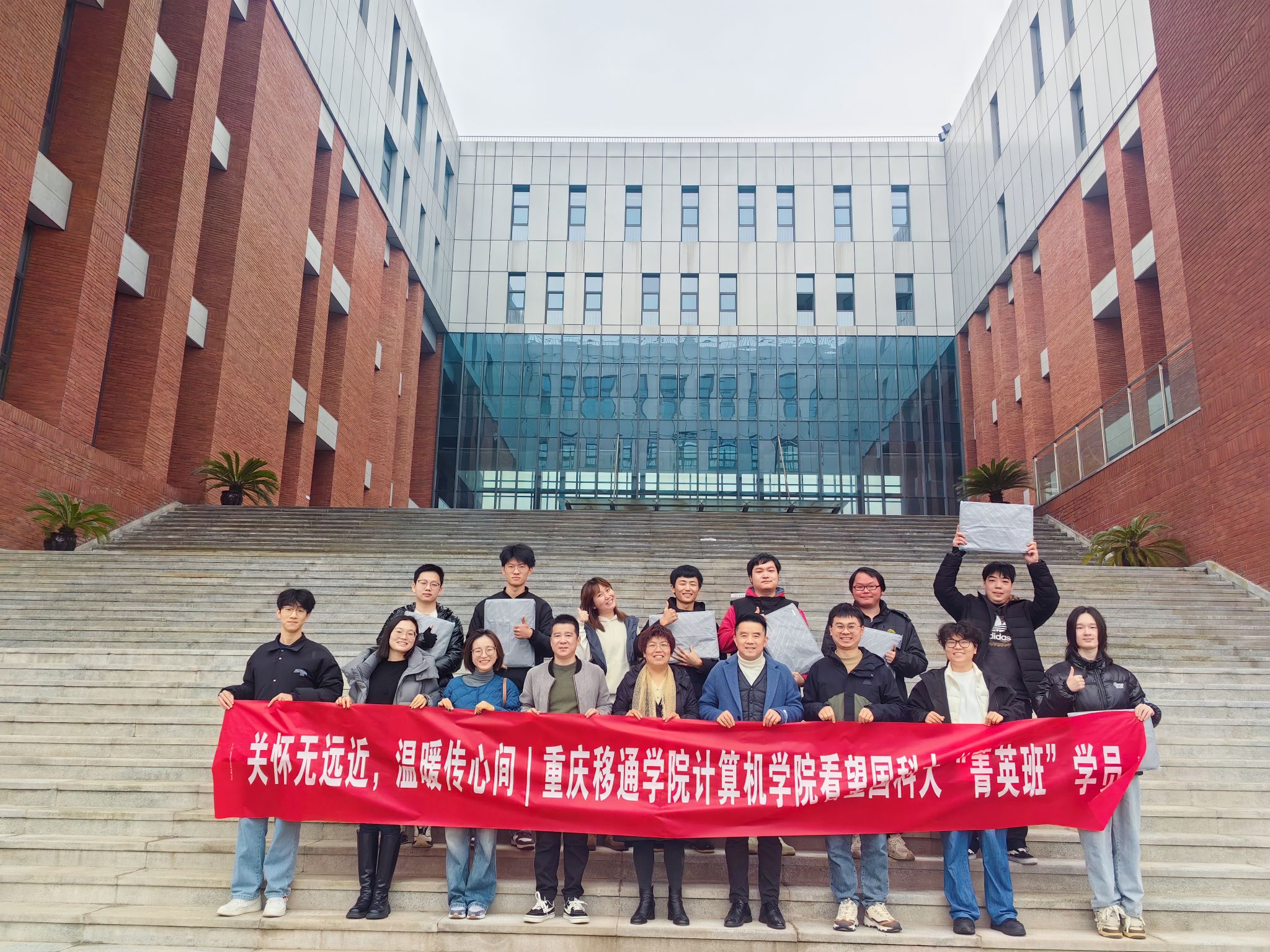 最后,全体人员共同合影留念,定格下这温馨而又难忘的一刻。照片中,每个人脸上都洋溢着灿烂的笑容,那笑容背后是对未来的无限憧憬和坚定信念。通过这次走访慰问活动,重庆移通学院计算机学院不仅加强了与国科大的交流合作,更为“菁英班”学员们注入了强大的精神动力。相信在不久的将来,这些优秀的学子们定能以更加饱满的热情和昂扬的姿态迎接新的挑战,在各自的领域里绽放出属于自己的光彩!