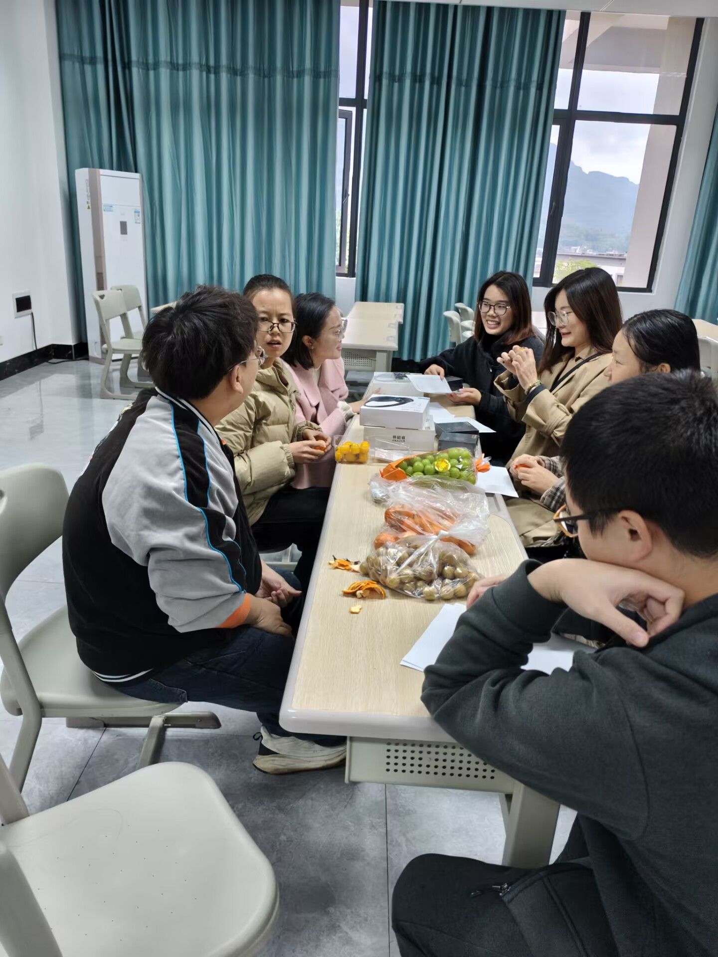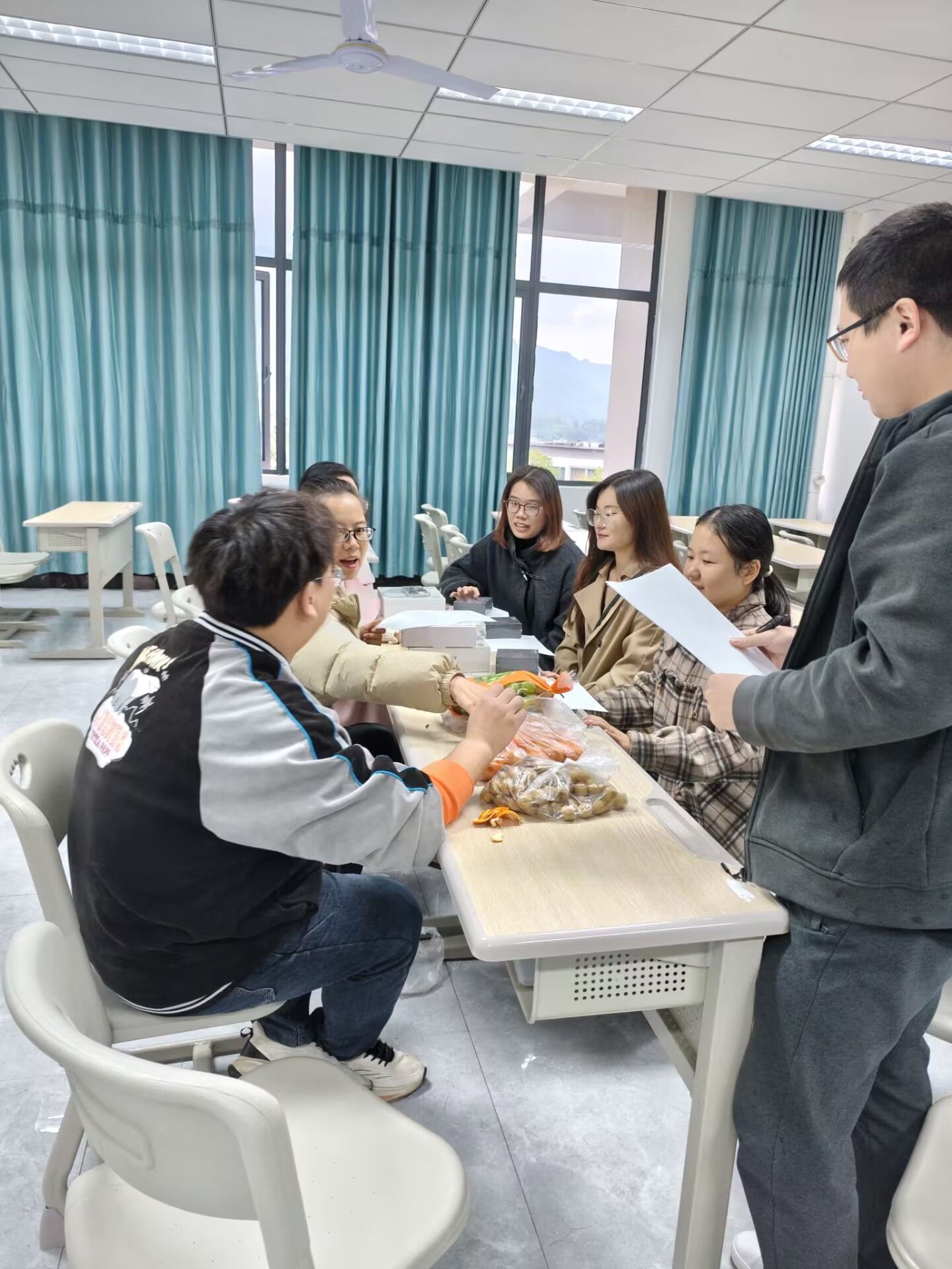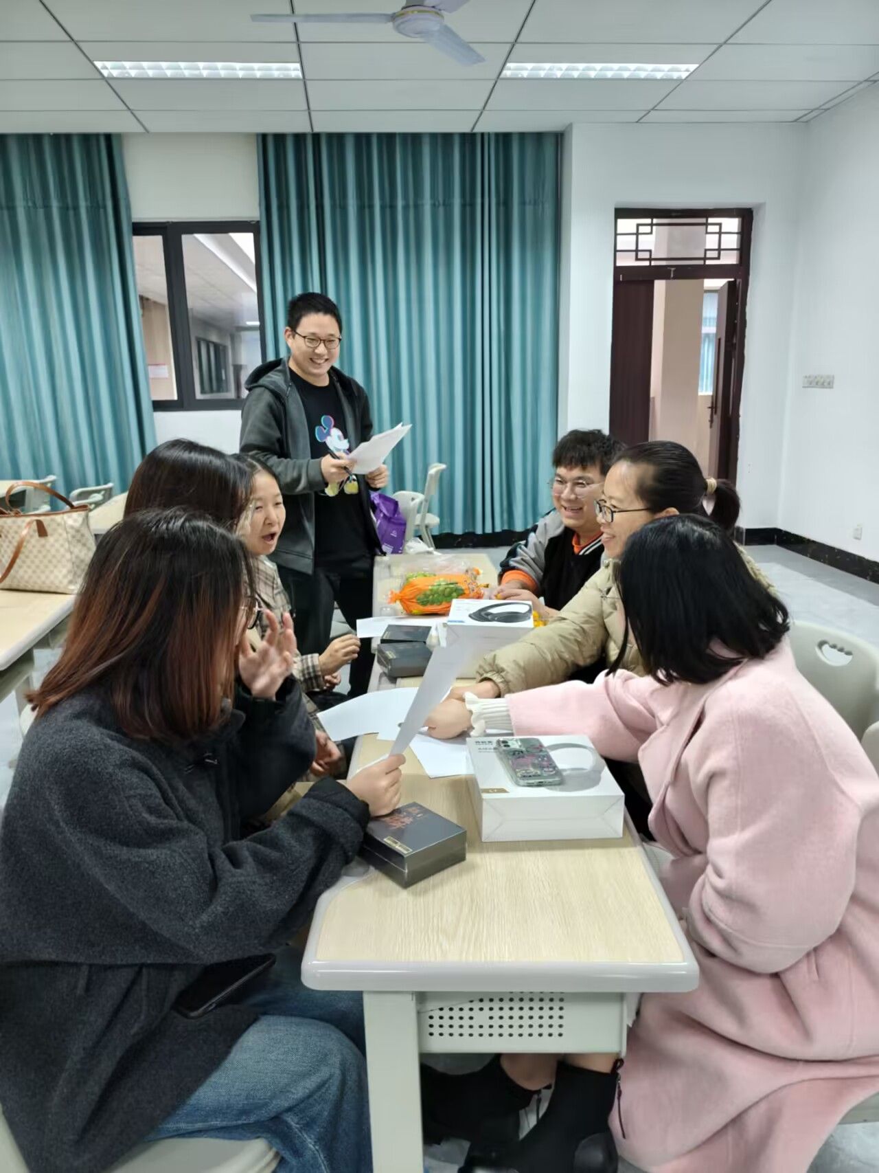 为营造良好的讨论氛围,课程组精心筹备,不仅为每位老师准备了高品质的耳机作为课程组礼品,还在会议现场摆放了琳琅满目的多种新鲜水果。耳机的配备,既体现了对老师们辛勤付出的尊重与关怀,也为他们在教学资源查阅、线上交流以及多媒体展示等方面提供了便利,极大地提升了研讨过程中的信息交互效率。而色彩缤纷、果香四溢的水果,则如同一股清流,在严肃紧张的教学研讨氛围中巧妙地融入了温馨与惬意,让老师们在思维碰撞的间隙,能够放松身心,以更加饱满的热情和清晰的思路投入到交流之中。