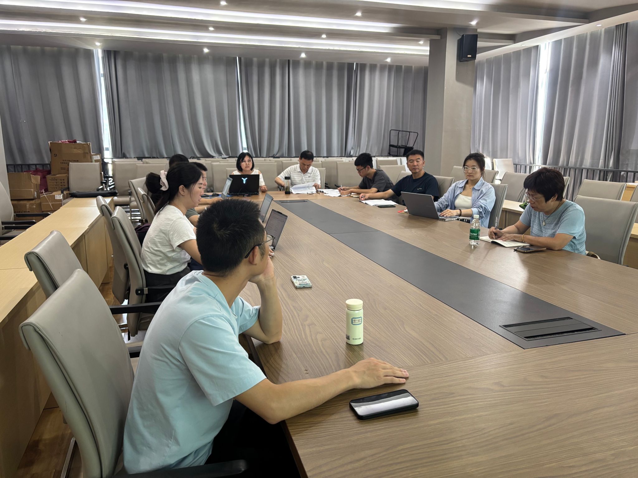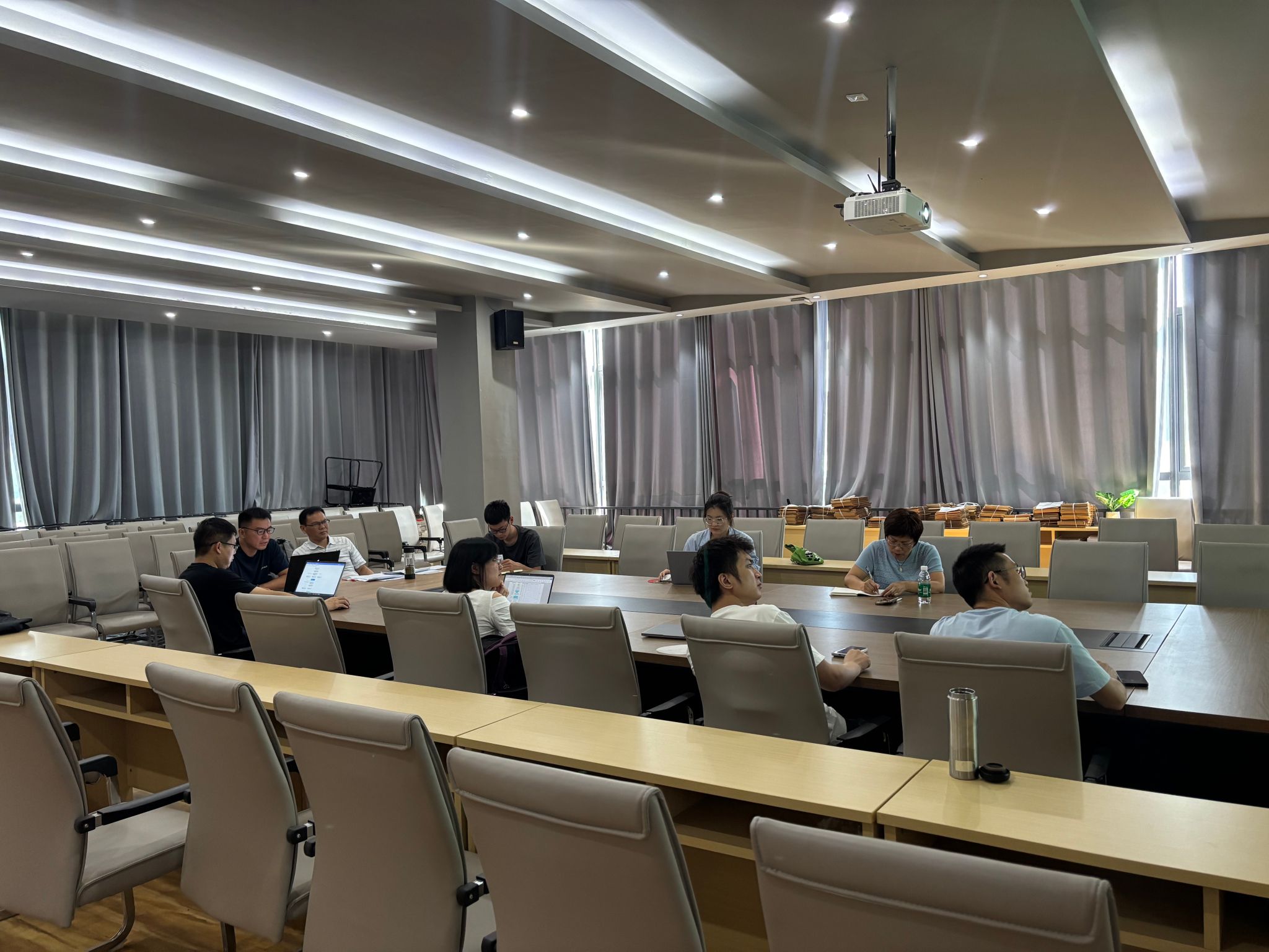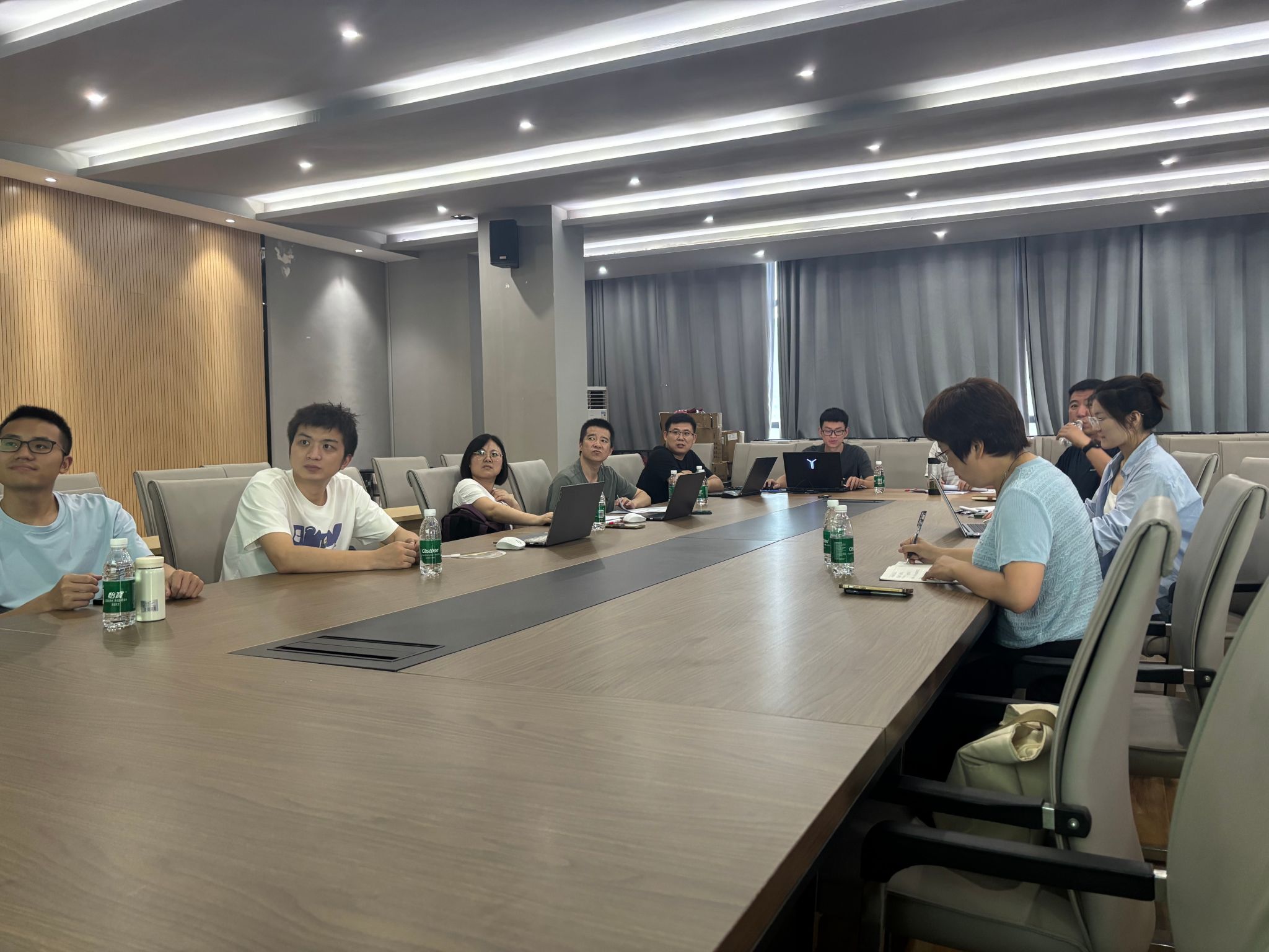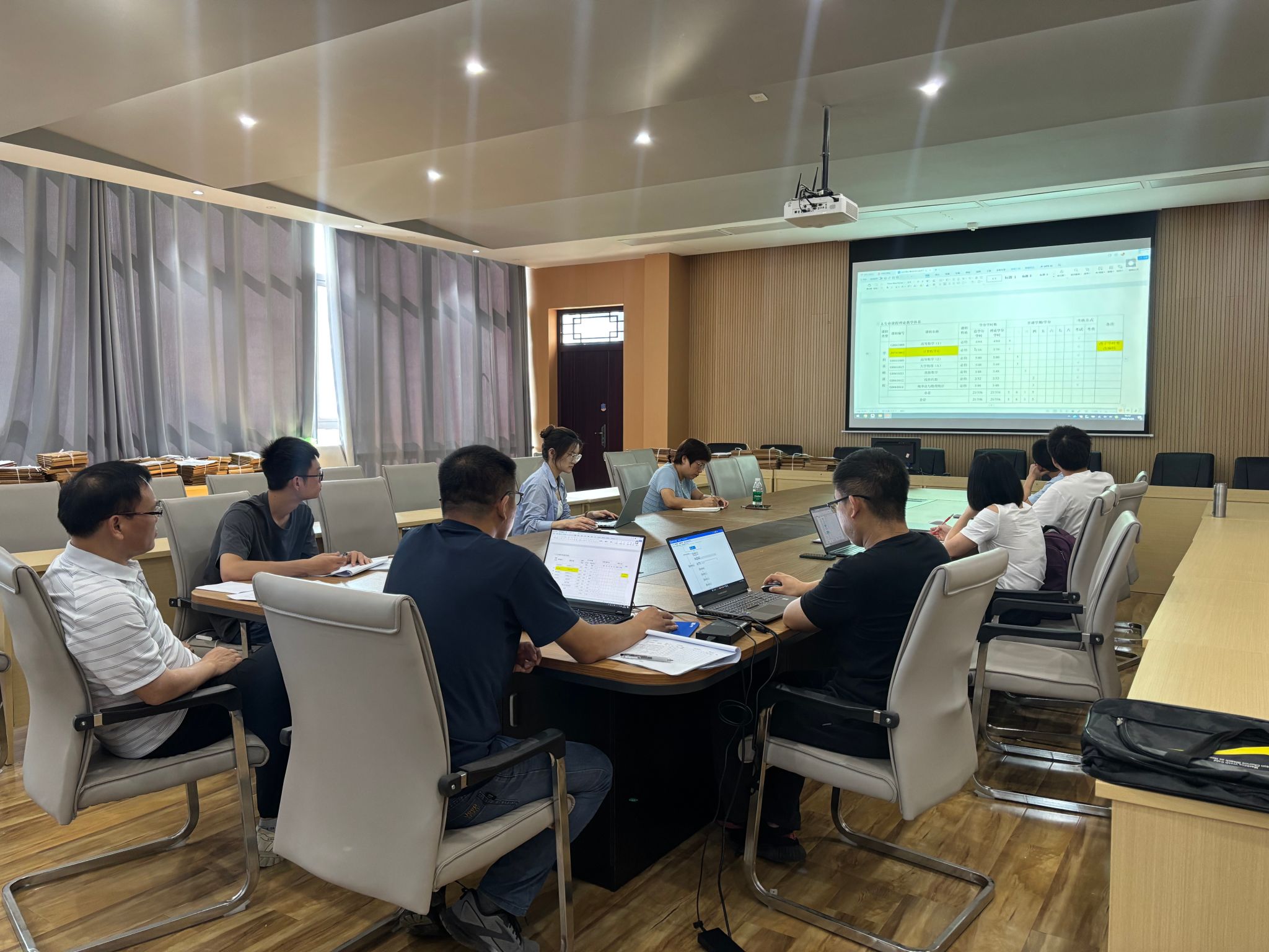 会议伊始,三位专业负责人分别进行汇报。李海燕对智能科学与技术专业的课程开设与学分分布情况作详细阐述,涵盖办公自动化、Python 数据库、智能计算等核心课程以及选修课设置;甘振韬针对计算机科学与技术专业,就选修课、开放试验、操作系统、计网双语课和校企合作课程等方面进行汇报;吴圣尧则介绍了电子与计算机工程专业的课程安排,包括电子导论、模电数电、嵌入式、单片机等课程内容。