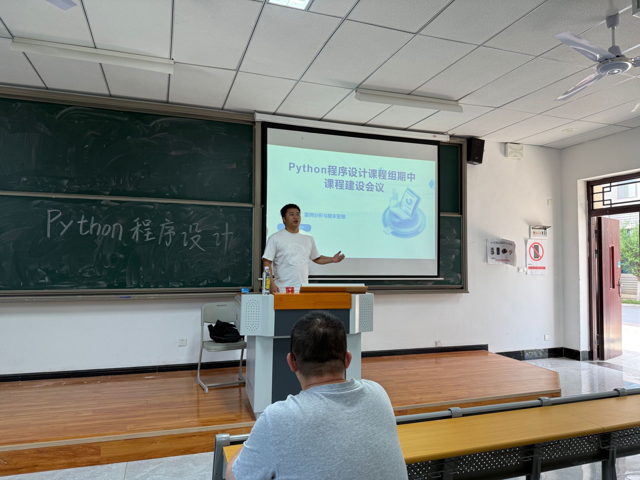 会议由课程组负责人邓祥凯老师主持。他首先回顾了本学期Python课程的教学进展,通过数据分析展示了各班级的出勤率、作业完成度及期中考核情况。张教授强调,下半学期的教学重点将转向期末复习与综合能力提升,并建议针对不同基础的学生设计分层复习任务,确保每位学生都能在期末考试中取得理想成绩。