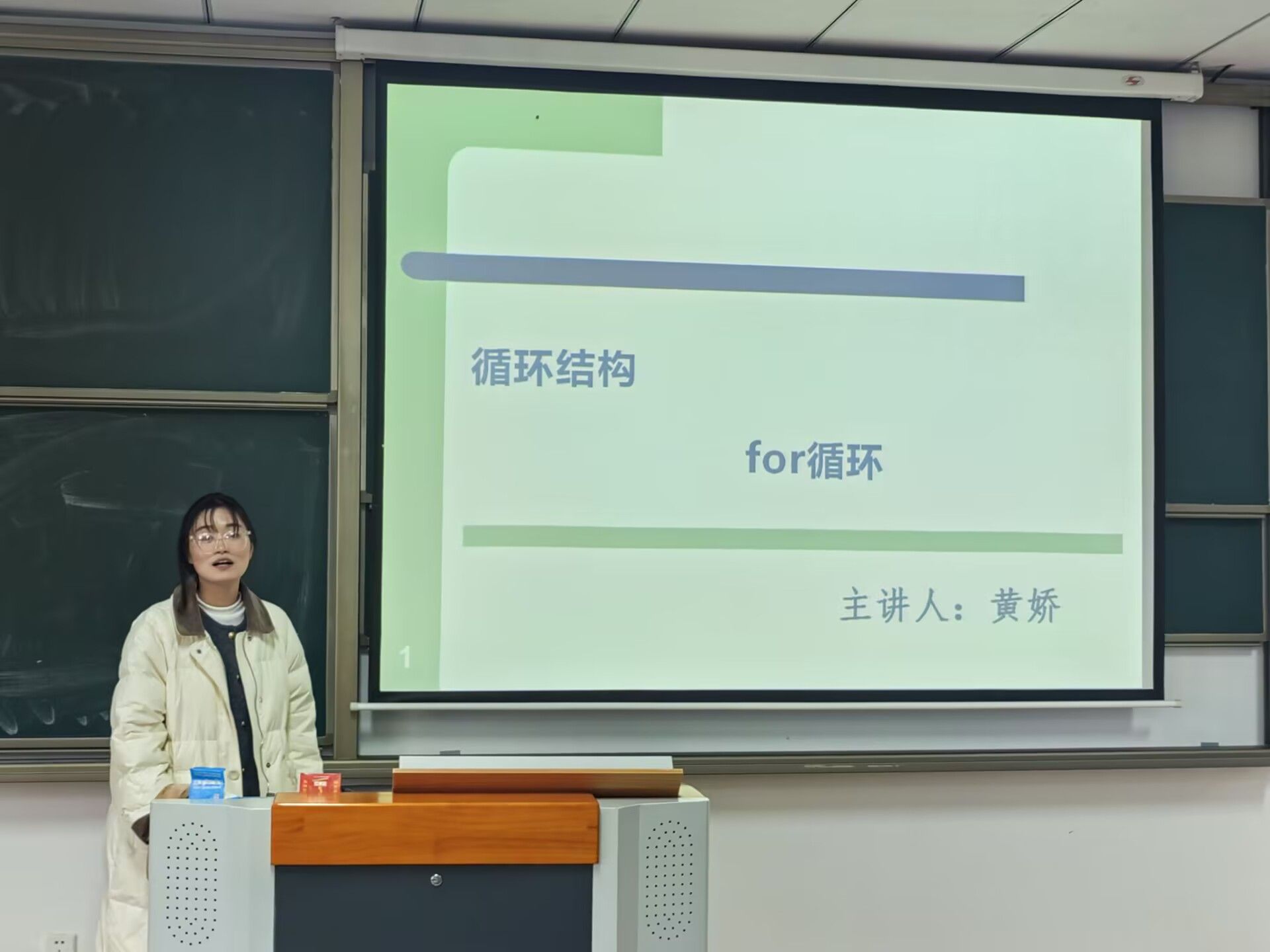 本次活动采取了一对一的展示与评价模式,每位参赛老师都有15分钟的时间进行说课和讲课。陈雪媛老师以《数据库原理》为题,深入浅出地讲解了数据库的基本概念与操作;黄娇老师则聚焦《for循环》,通过生动的实例展示了循环结构在编程中的应用;王瑞芳老师带来了《信息加密》的课程内容,揭示了信息安全领域的核心技术;周海老师则以《turtle库》为引子,引导学生探索Python编程中的图形绘制艺术。四位老师的展示各具特色,充分展现了他们在各自领域的深厚功底和教学热情。