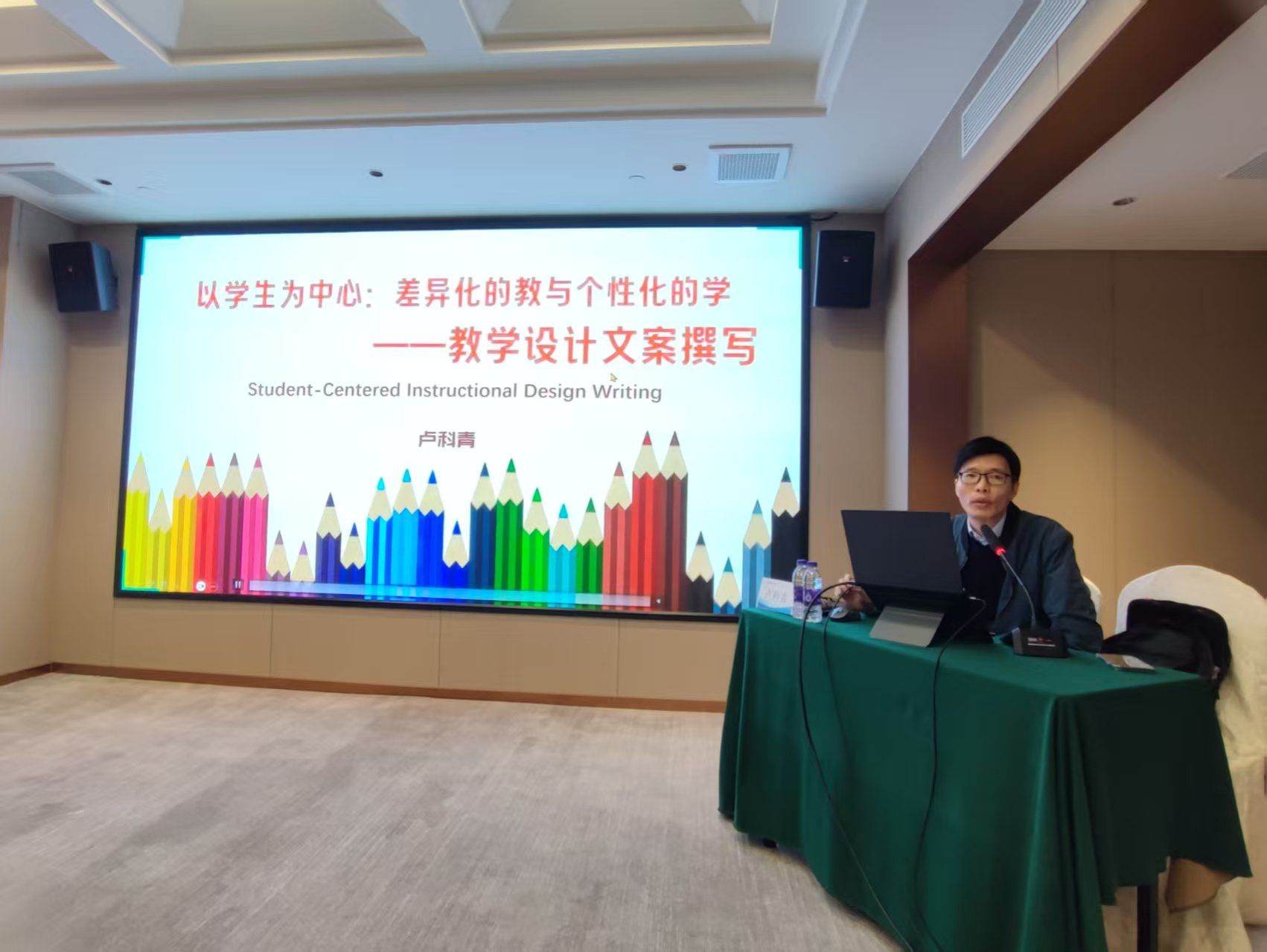 随后,卢科青教授围绕 “以学生为中心:差异化的教与个性化的学 — 教学设计文案撰写” 展开讲解。她以多份优秀教学设计文案为样本,逐字逐句解析撰写逻辑:在 “学情分析” 模块,需通过问卷调研、前期成绩分析等方式,精准定位学生知识盲区与学习风格差异;在 “教学过程设计” 环节,要设计基础版、进阶版、挑战版三类任务,满足不同层次学生需求;在 “评价体系” 部分,需融入过程性评价指标,如课堂互动参与度、AI 辅助下的作业完成质量等。卢教授还针对参训教师提出的 “如何平衡差异化教学与教学进度” 问题,给出了 “分组协作 + AI 个性化辅导” 的解决方案。
