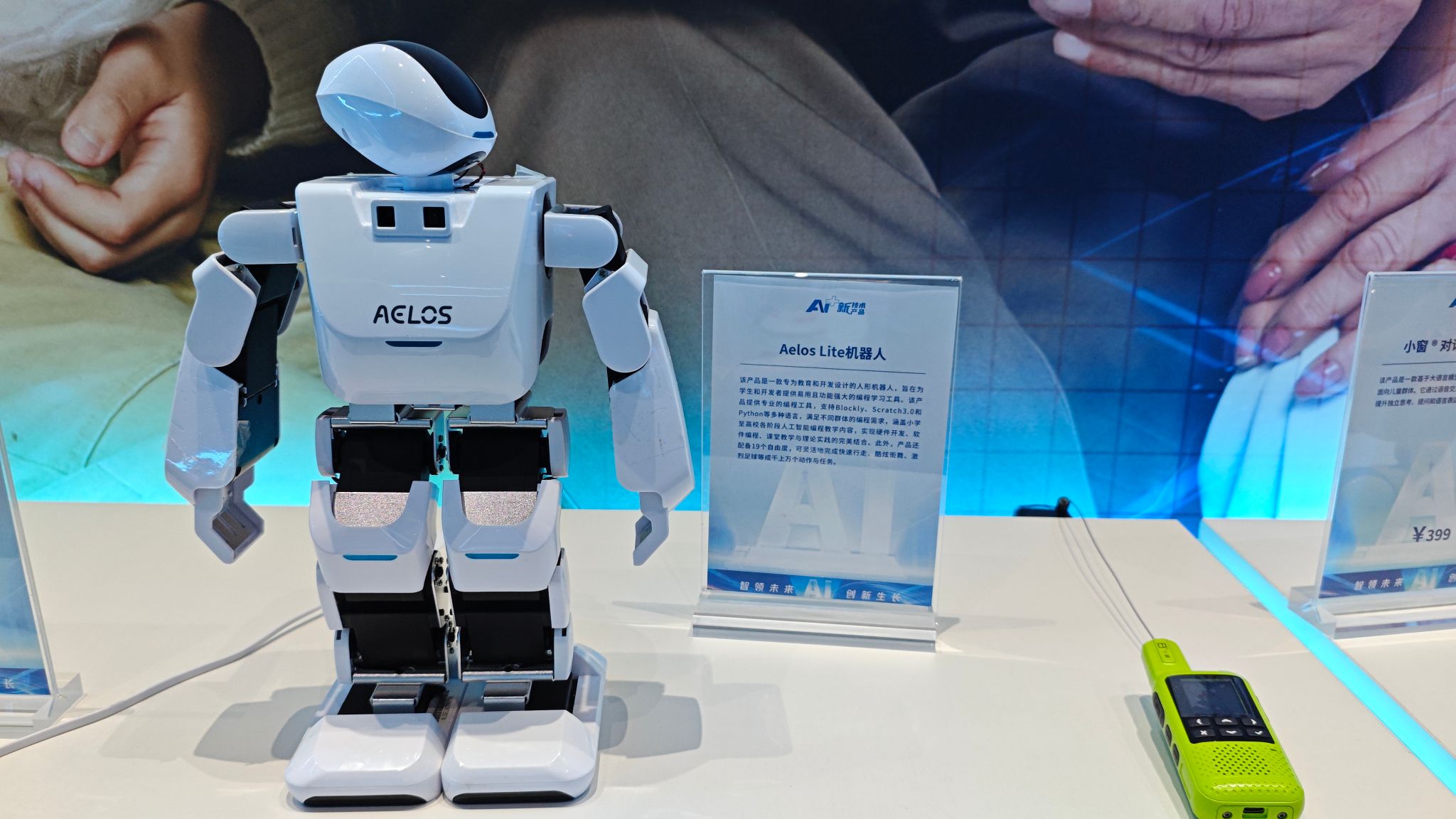 Aelos Lite人形机器人作为面向教育的开发平台,展现了其在高自由度运动与多语言编程支持上的优势。机器人配备19个关节自由度,可完成行走、舞蹈、足球等复杂动作,并支持Blockly、Python等编程工具,覆盖从基础教育到高等研究的全阶段教学需求。其设计理念强调“硬件—软件—课程”闭环,通过仿真环境与实体机器人结合,降低学习门槛并提升实践效率。这一产品为实验室的教育智能化方向提供了平台支持,尤其在课程建设、产教融合与创新人才培养方面可直接应用。