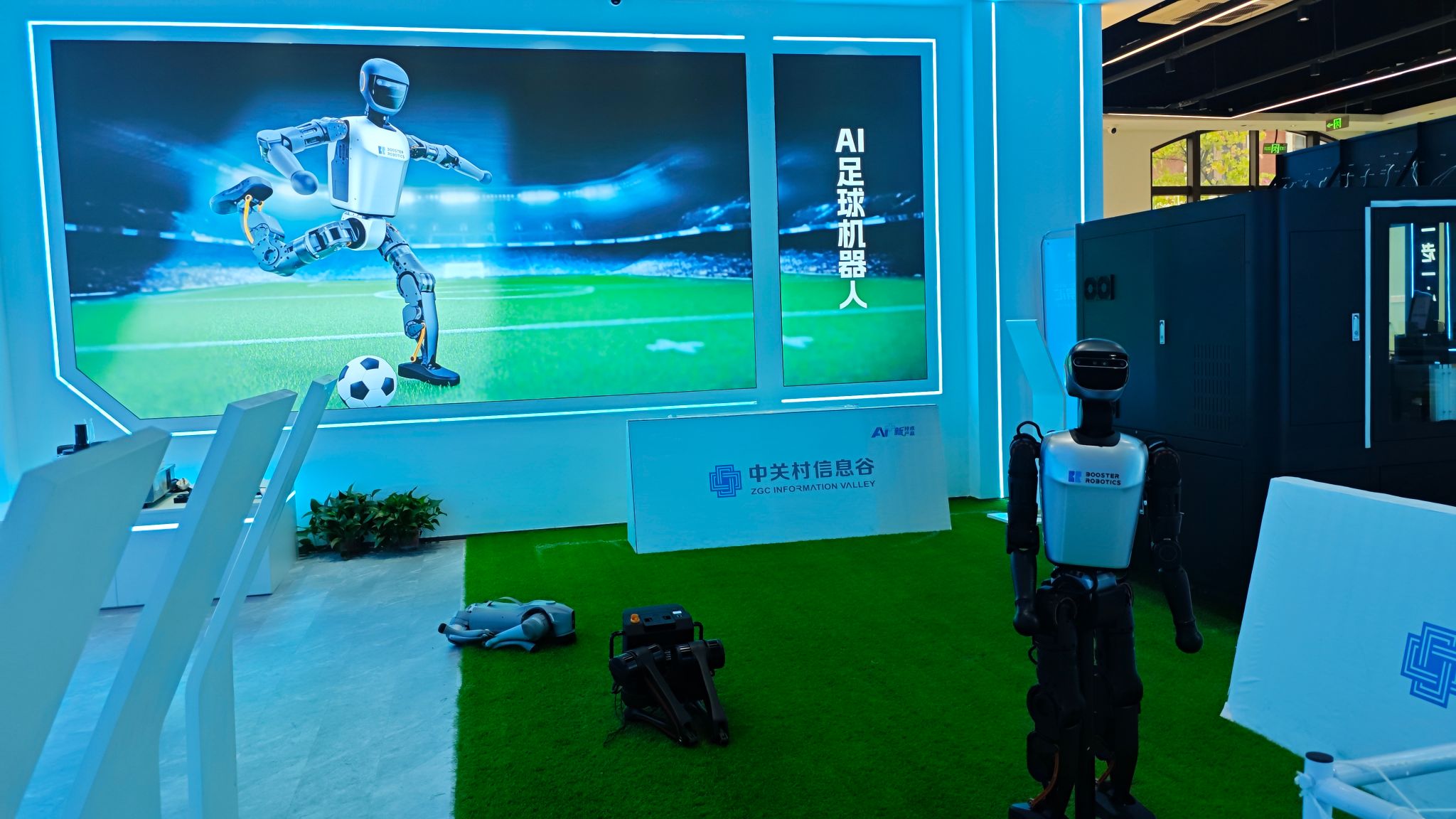 AI足球机器人展区展示了其在动态环境中的运动控制与多智能体协作能力。通过深度强化学习技术,机器人能够实时感知球场状态,自主完成带球、射门、防守等任务,并涌现出超越预设脚本的战术策略,如转身支点旋转、协同跑位等。其技术核心在于结合模拟训练与真实环境迁移,通过两阶段训练方法(技能学习与多智能体对抗)提升机器人的敏捷性与适应性。这一成果为实验室在具身智能和多智能体系统的研究提供了关键技术参考,尤其在复杂场景下的实时决策、人机协作等课题上具有启发价值。