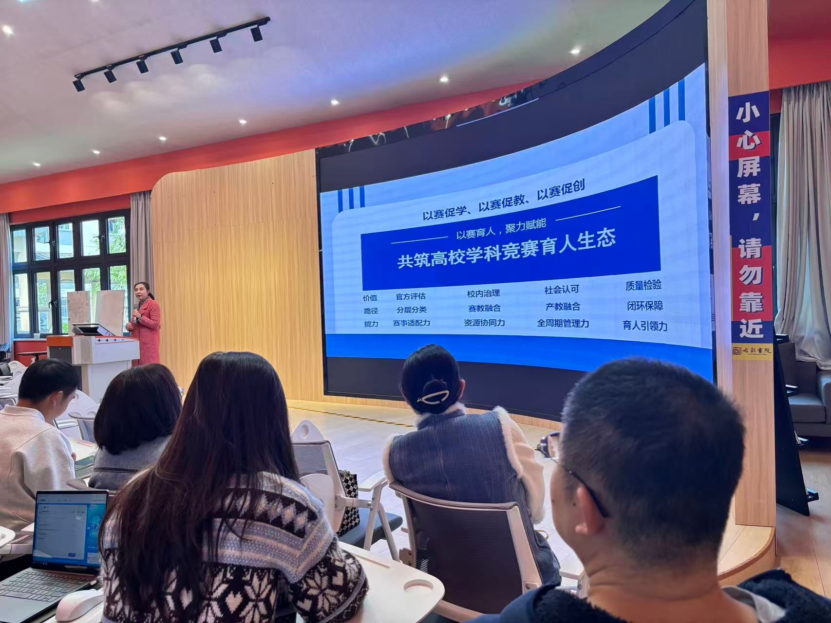 为深化教育教学改革,充分发挥学科竞赛在人才培养中的重要作用,2025年11月20日上午,计算机学院特邀重庆师范大学兰晓红教授在古剑书院含光报告厅开展题为《高校学科竞赛的育人价值与实践路径》的专题讲座。本次讲座由学院副院长向碧群主持,计算机学院全体教师参加。