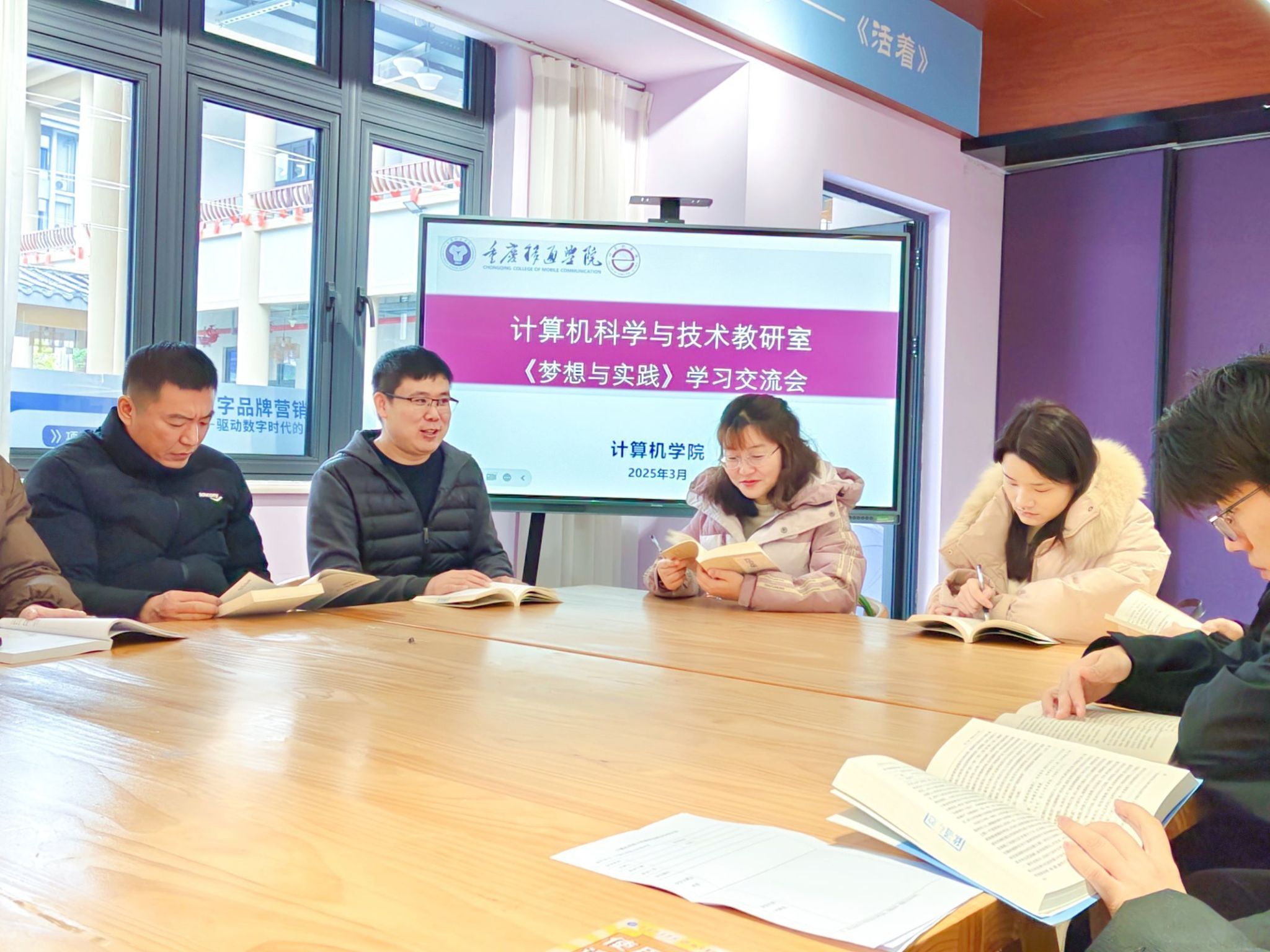 深学笃行 凝聚育人共识,卢星儒主任领学《梦想与实践》中“教育创新与产业需求同频共振”等核心篇章,强调以“学生发展为中心、实践能力为根基”的育人理念。甘振韬老师结合书中技术驱动未来的论述,提出课程体系需强化基础学科核心能力培养,推动计算机领域人才从知识积累向创新能力转型。与会教师一致认为,应将书中倡导的“产教深度融合”理念融入教学实践,形成“校企协同、赛教联动”的育人模式。