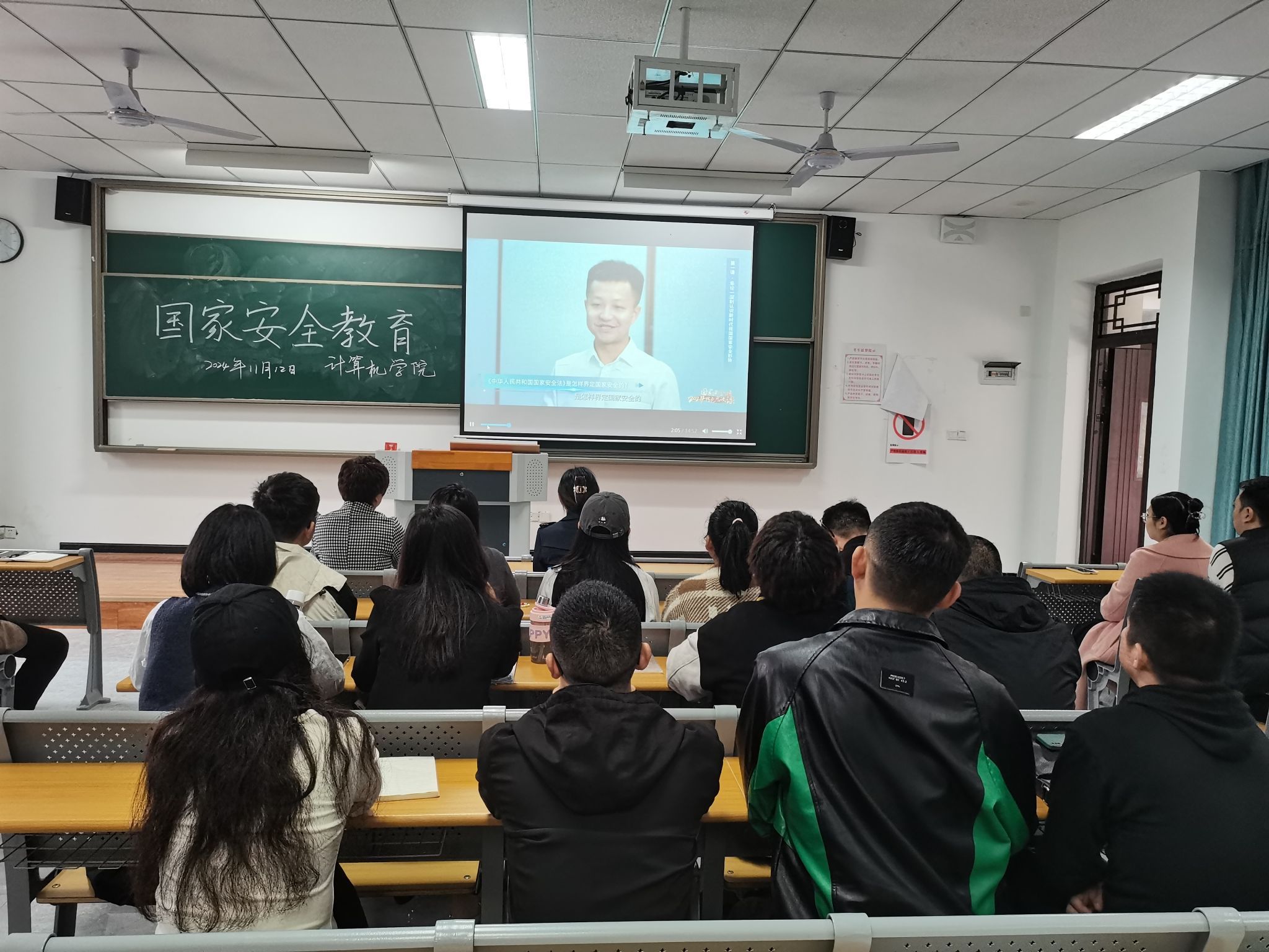 为深入学习彭鸿斌董事长的讲话精神,推动学院教育教学质量提升,进一步提升大家的安全意识。2024年11月12日上午,计算机学院全体教师齐聚一堂,深入学习了彭鸿斌董事长的系列讲话,并观看了《国家安全教育》课程的录播视频。