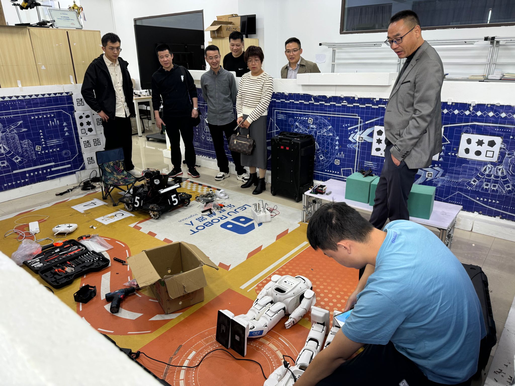 随后,实验室负责人详细展示了实验室的先进设备、研发平台及近年来在机器人竞赛、科研项目等方面取得的显著成就。双方就机器人技术的最新发展趋势、人才培养模式的创新、实验室建设与管理经验等方面进行了深入探讨。