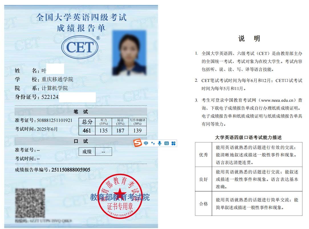 在上学期,计算机学院智能科技创新中心组织并开展了一系列丰富多彩、扎实有效的英语四六级备考活动,诸多老师参与其中。2025年9月17日,部分参加英语四级备考的学生给老师们传来喜讯,他们顺利拿到四级证书了!所有师生皆笑逐颜开。