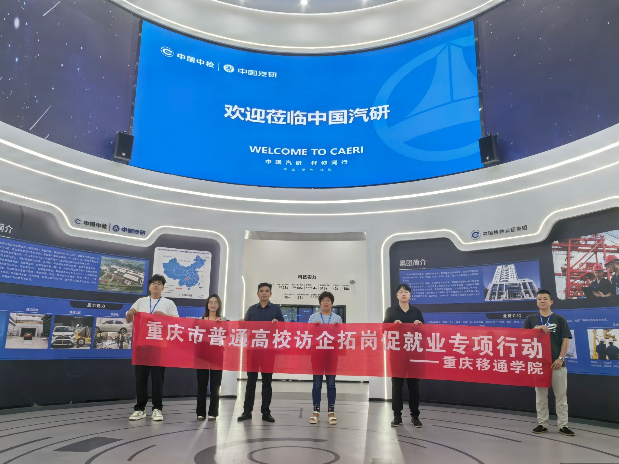 为了拓宽学生实习与就业渠道,加强校企合作,2025年9月18日,重庆移通学院计算机学院副院长向碧群带队,智能科学教研室主任徐多礼,就业创业办公室主任王伟孪,骨干教师王浩强,辅导员丁滢一行,先后走访了中国汽车工程研究院与重庆武工工业技术研究院有限公司,开展“访企拓岗促就业”专项活动。