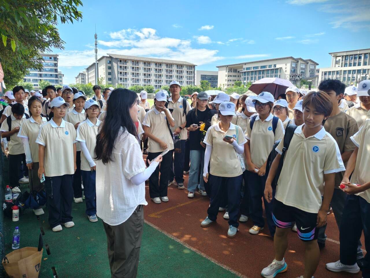 为贴合学生训练事宜,学院还创新开展户外安全讲解活动。在军训下训期间的校园运动场、林荫道旁,辅导员庞越等带领学生们开展现场安全讲解。他们结合校园周边环境,讲解假期外出游玩的安全注意事项,如远离危险水域、遵守景区规定等,通过面对面交流、案例分享,让安全知识更生动地传递给每一位学生。