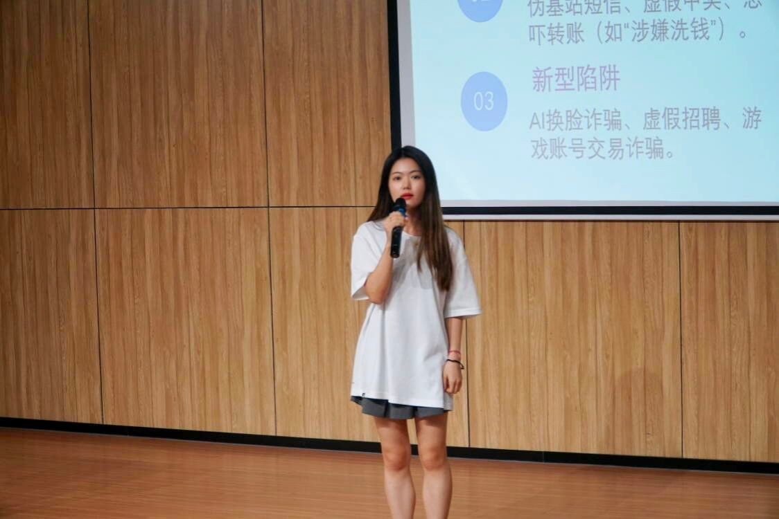 在室内主题班会与年级会上,辅导员们结合精心制作的安全教育PPT,从财产安全、出行安全、网络安全、消防安全等维度深入讲解。如针对电信诈骗,详细剖析了伪基站短信、虚假中奖、AI换脸诈骗等新型陷阱,用真实案例警示学生提高警惕;对于出行安全,强调要选择正规交通方式、遵守交通规则,同时提醒学生在人流密集场所注意个人财物保管。辅导员雷婷婷、吴迪在年级会上着重强调了学校请假制度,要求学生及时报备行程,确保假期行踪可追溯。