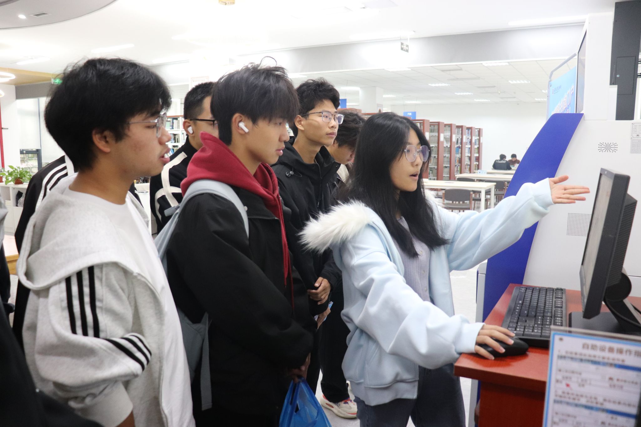 在老师细致的讲解后,新生们立即开展自主探索实践。根据所学检索方法,各自前往各楼层书架区域查找目标书籍,完成从检索系统使用到实体书籍取阅的全流程操作,亲身体验图书馆资源的实际获取过程。活动现场呈现“教师指导有序、新生操作积极”的生动场景,形成“教学相长”的互动氛围。新生们在实践中进一步熟悉图书馆资源布局,切实提升了资源获取与利用能力。