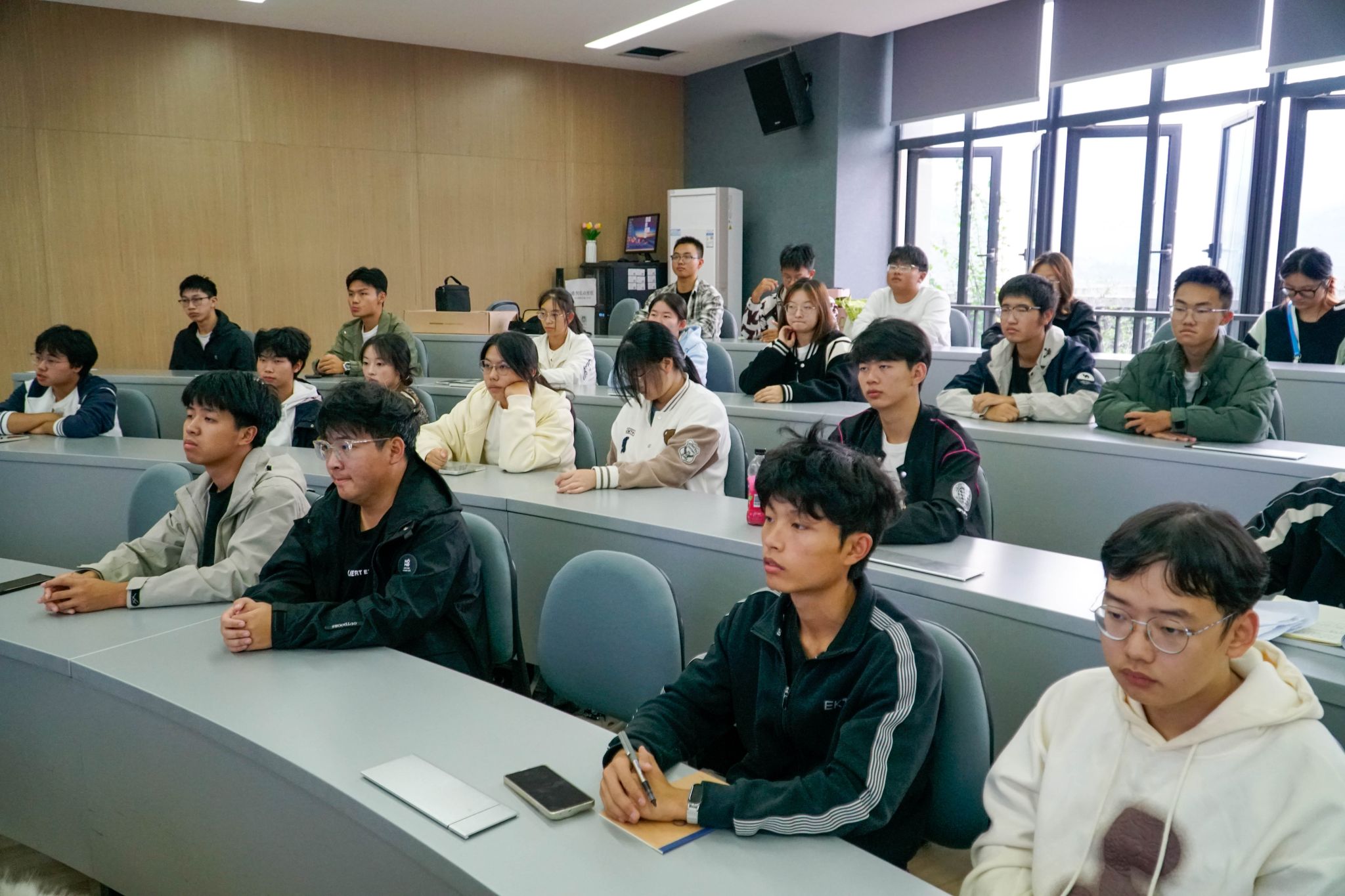 在专业与课程方面,讨论了如何在知识的深度挖掘与广度拓展间进行有效博弈与平衡。在人际与情感层面,强调构建稳固、良性社会系统。讲座鼓励学子通过亲身体验丈量实现,校准自己的选择。