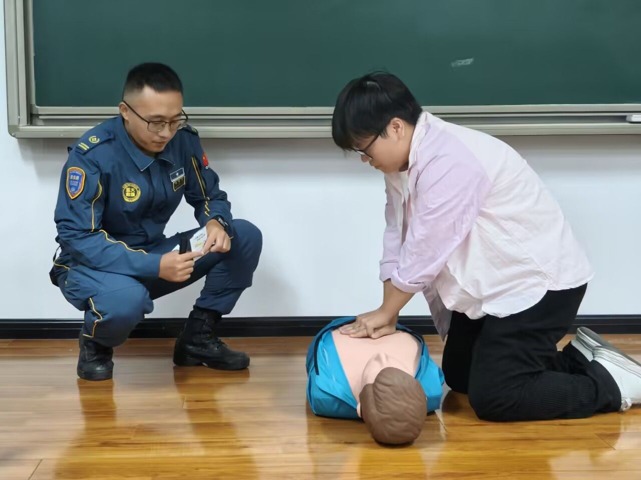 10月19日,仁者楼301、302教室内,2025级计算机科学与技术1-12班全体学生,辅导员苏畅、戴小梅,以及移“綦”向蓝天·应急救援志愿服务专项支队,联合綦江区蓝天救援队开展急救技能培训。救援队通过趣味讲解红十字运动起源、气道异物梗塞急救知识,并结合真实案例拆解AED操作流程、辅导员现场示范;助力学生掌握救援技能。此次活动实现理论与实践深度结合,帮助学生掌握基础急救技能,强化安全防护意识,为校园安全筑牢防线,推动“自救互救”理念在学生群体中落地生根。