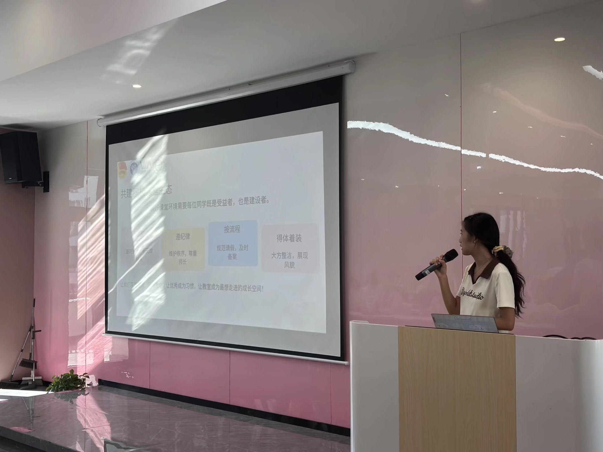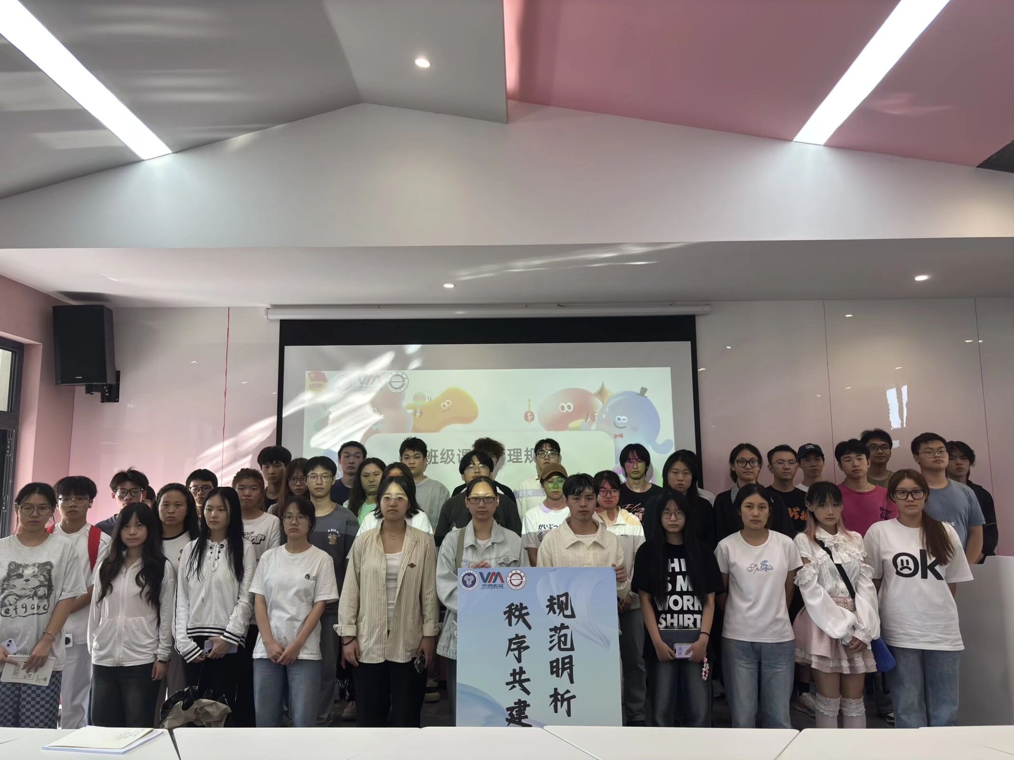 最后,学习部主席李曦柔向全体同学发出倡议,呼吁大家从守出勤、遵纪律、按流程、得体着装等方面共同发力,将每一次准时到课、得体着装、友善互动都视为对班级品牌的加分,让优秀成为习惯,把教室打造成最想走进的成长空间。