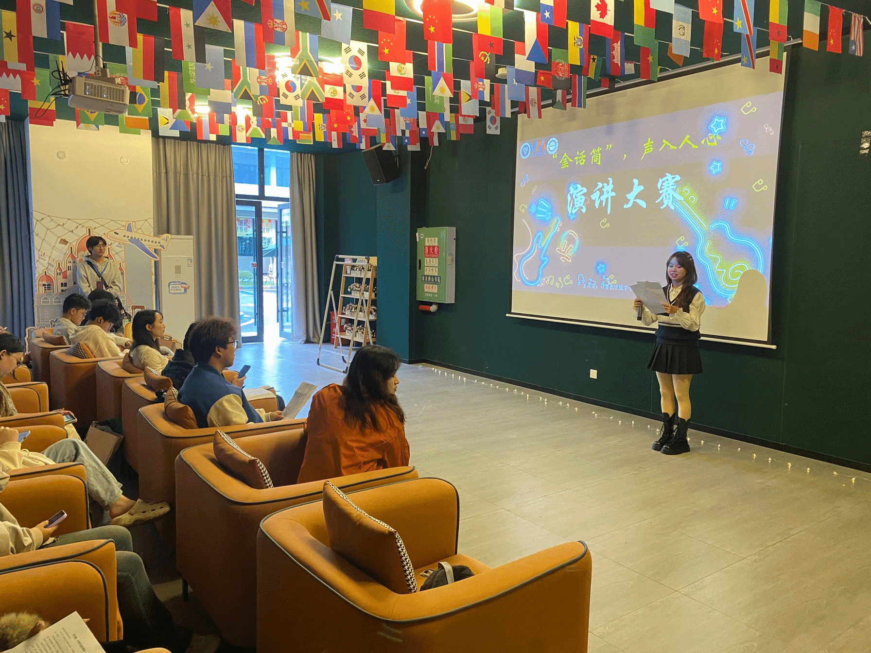 10月24日下午14:00计算机学院“金话筒”演讲比赛在横山流光·多功能影音室成功开展。在这里,无需畏惧表达的边界——可以用故事追溯成长的足迹,用观点碰撞时代的脉搏,用热忱点燃全场的目光。见证思想从萌芽到绽放的全过程,希望为每一份真诚的表达,找到最热烈的回响。话筒已准备就绪,只待你登场。