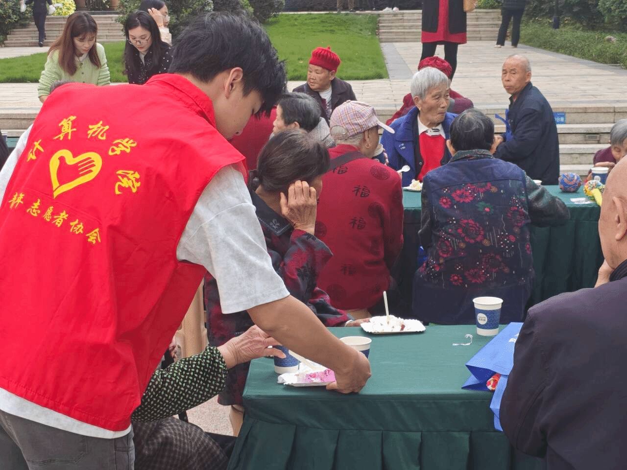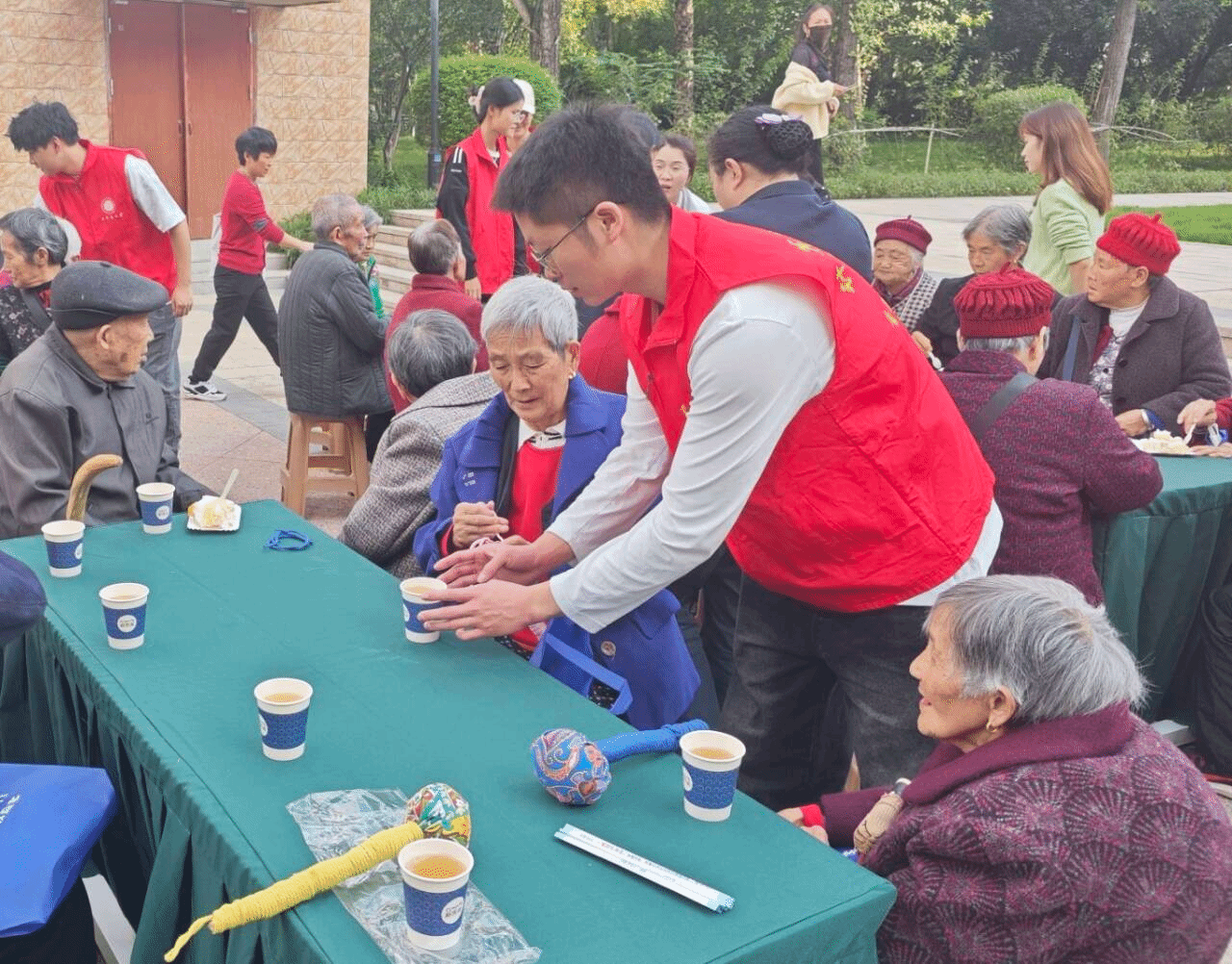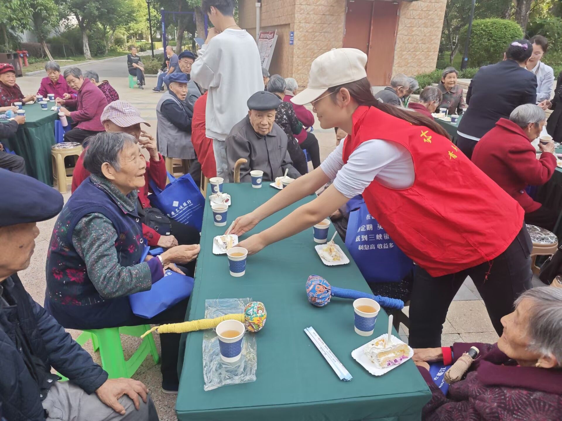 温情共享环节,工作人员与志愿者们端来美味的蛋糕和清甜的银耳汤,老人们围坐在一起,品尝着香甜的点心,分享着活动的喜悦。软糯的蛋糕、滋润的银耳汤,不仅是舌尖的美味,更是心田的慰藉。在这温馨的氛围中,老人们感受到的不仅是食物的美味,更是来自社区大家庭的关怀与温暖。