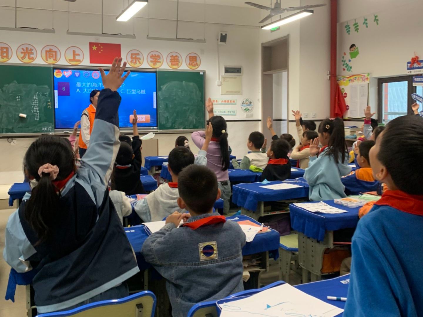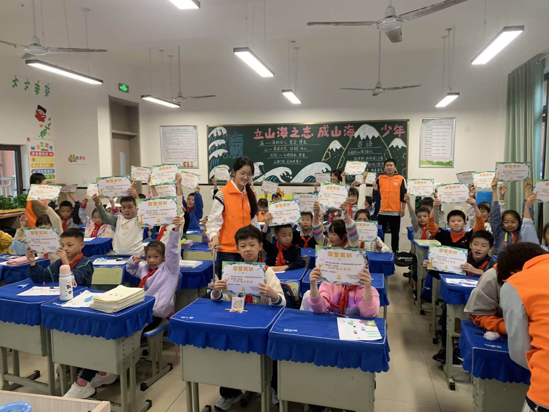 活动尾声,全体学生面向屏幕中的环保主题机器人,在主持人的带领下,庄严宣读《海洋保护宣言》,铿锵有力的誓言,满是对守护海洋的坚定决心。宣誓结束后,志愿者为每位学生颁发“AI环保小卫士”证书,为小朋友们埋下爱护海洋的种子。