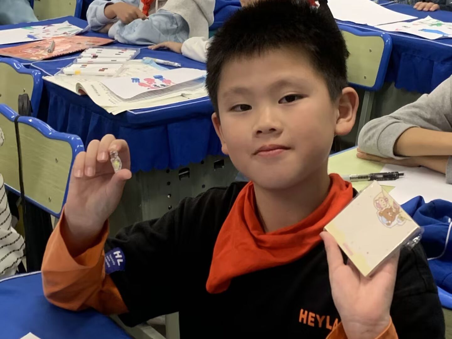 在“水彩绘未来”环节,AI环保小卫士发挥天马行空的想象力在A4纸上创作,有的绘制AI探测器捕捉塑料垃圾;有的勾勒珊瑚海底森林;还有的画潜水艇打捞废弃渔网。画作中既有对海洋的憧憬,也藏着科技护海的巧思。最终,活动评选出5幅“最佳创意作品”,进一步传递科技赋能环保的理念。