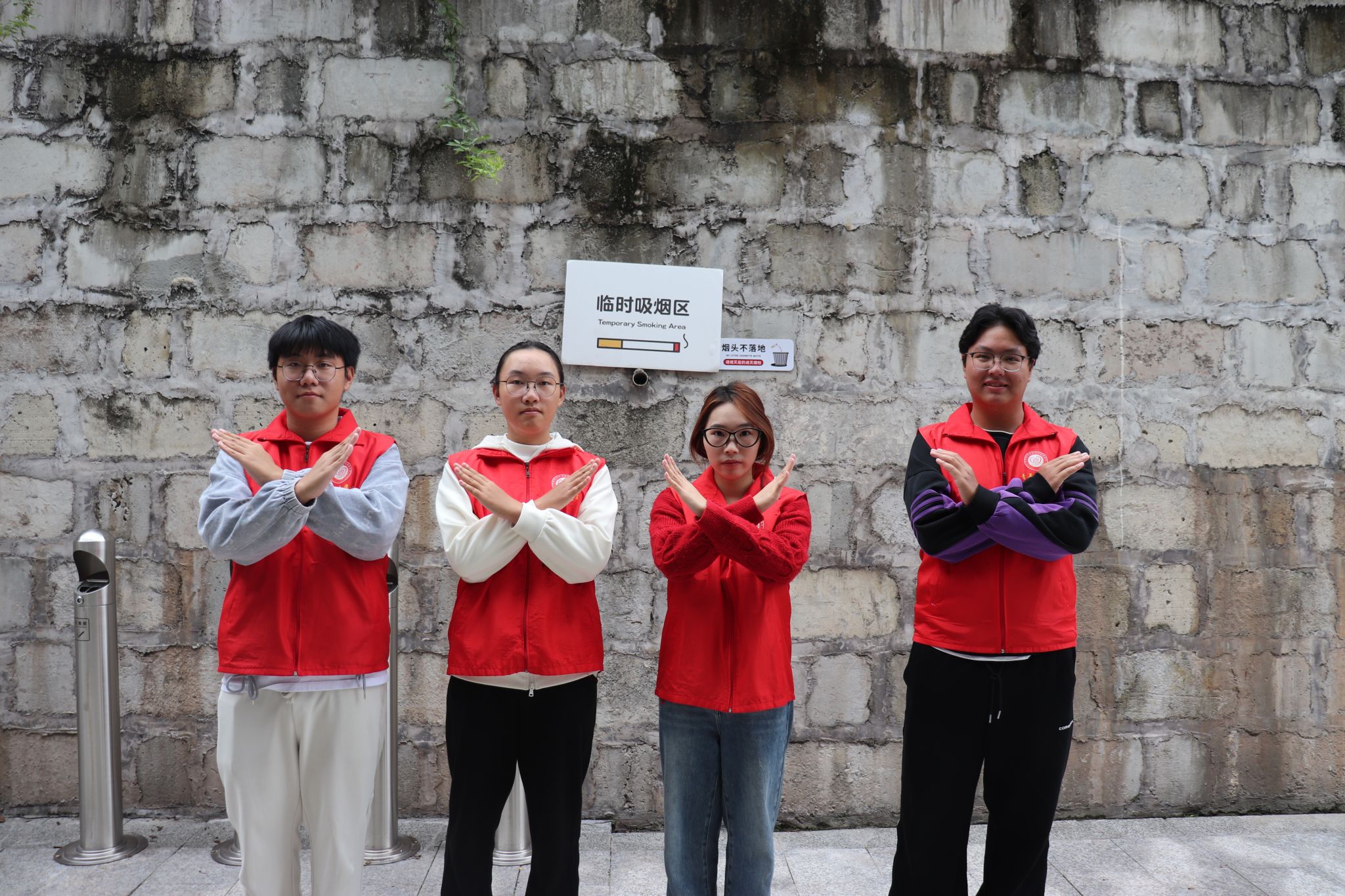 在校园内发现吸烟行为时,志愿者巡楼控烟队遵循“礼貌先行、耐心沟通”准则,主动上前劝导其遵守校园控烟要求、珍惜健康,同时引导吸烟人员前往临时吸烟区域。巡楼过程中,志愿者若发现烟头,也会弯腰捡起并妥善投放至分类垃圾桶。随着活动的深入开展,广大师生对"定点吸烟、文明控烟"的认知度显著提升,不仅能够自觉遵守相关规定,更能主动提醒身边人员,使文明控烟的良好氛围在校园内日益浓厚。