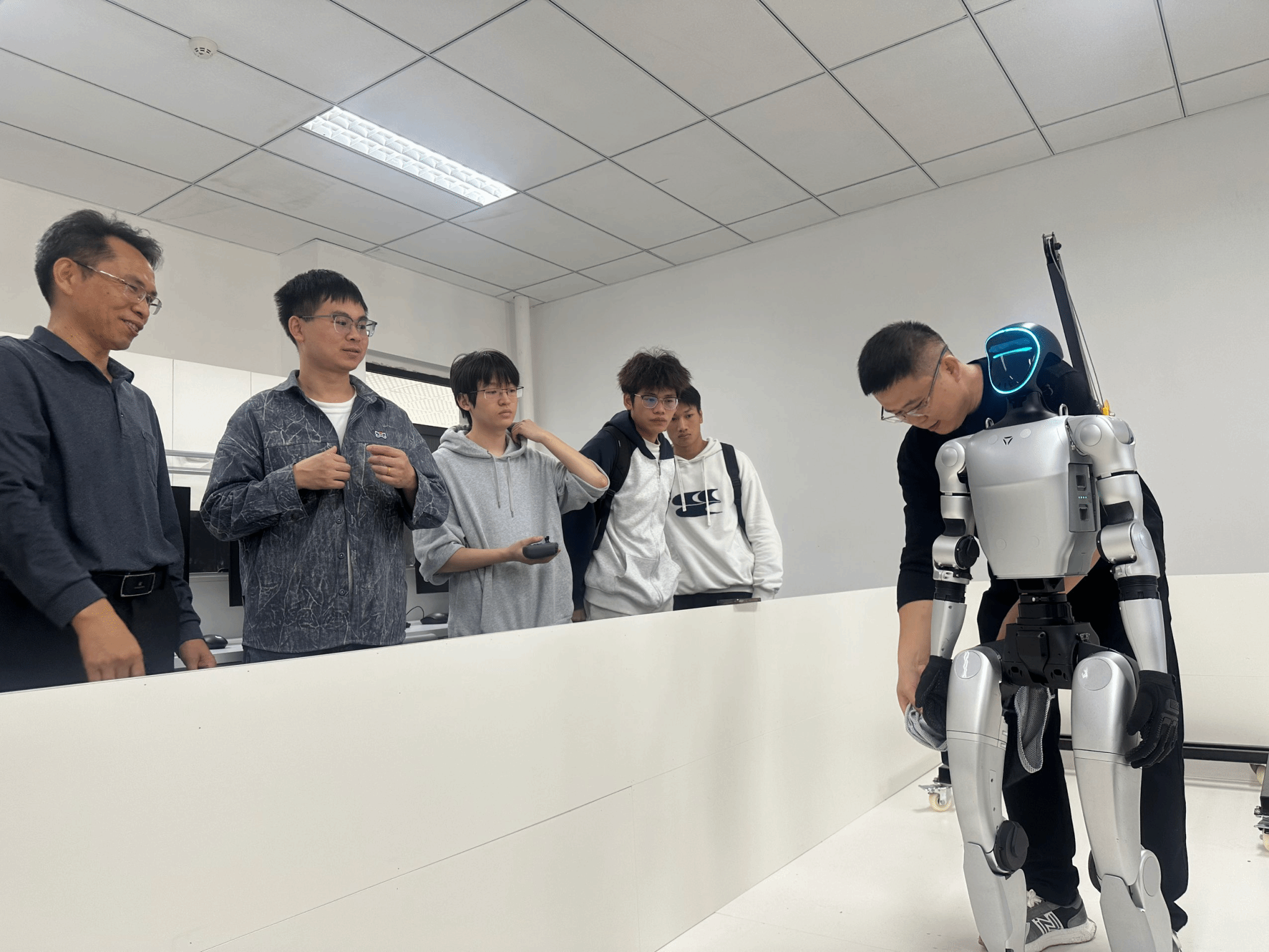 活动中,卢星儒主任向来宾集中展示了学院引进的智能服务机器人与四足机械狗。服务机器人搭载多传感器融合系统,支持编程路径设定,参观者通过自定义指令观察其自主避障与动态调整的执行过程,深入理解人工智能的决策逻辑。