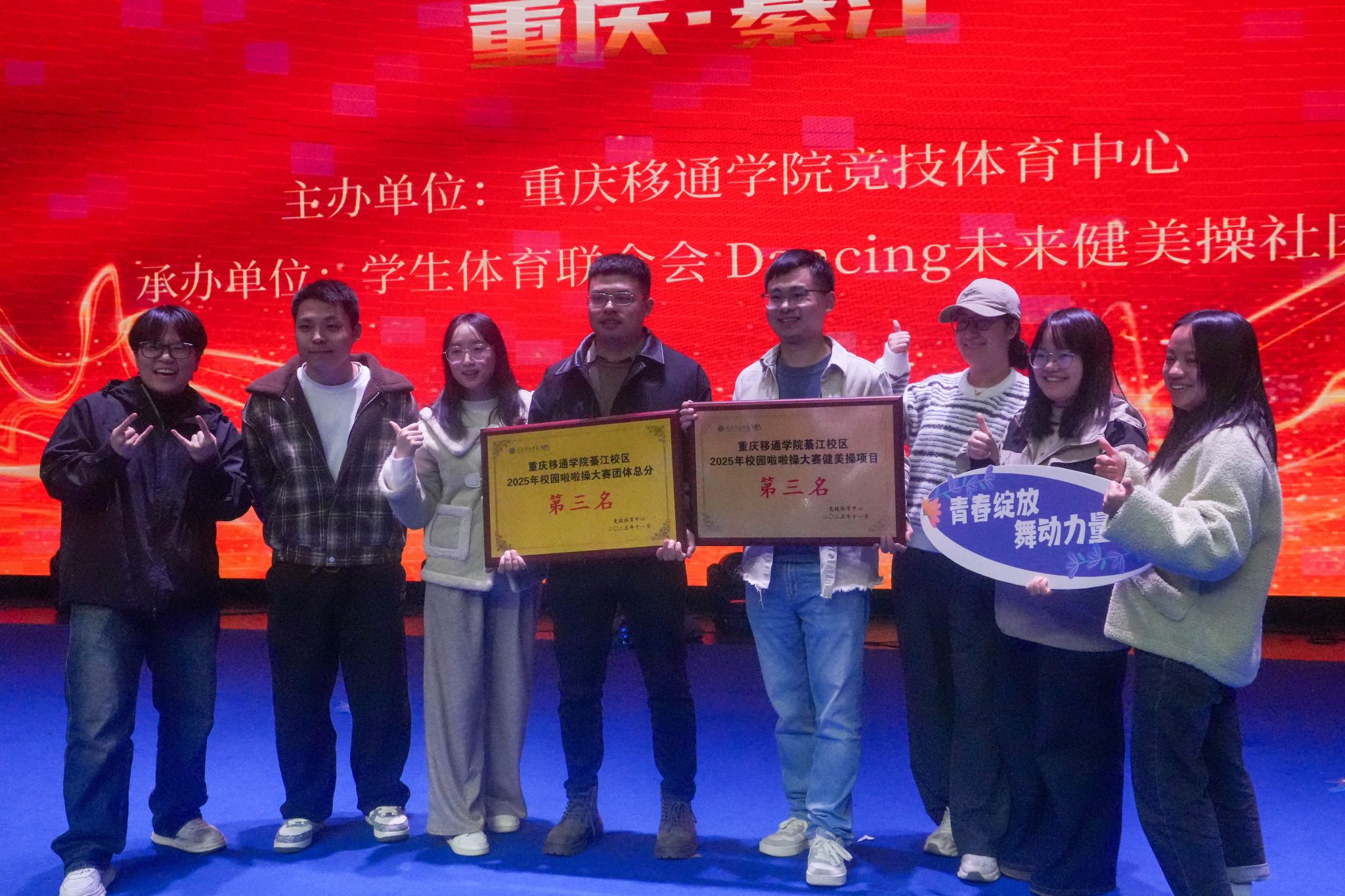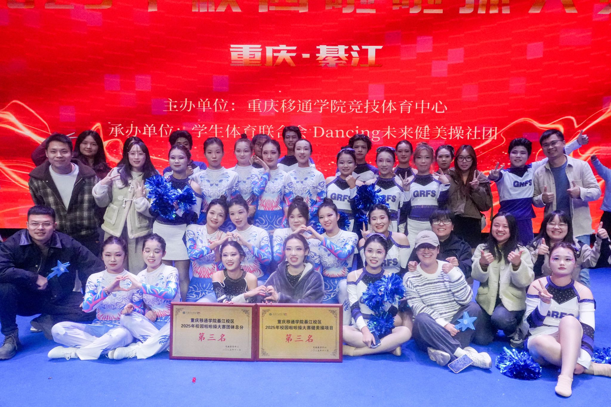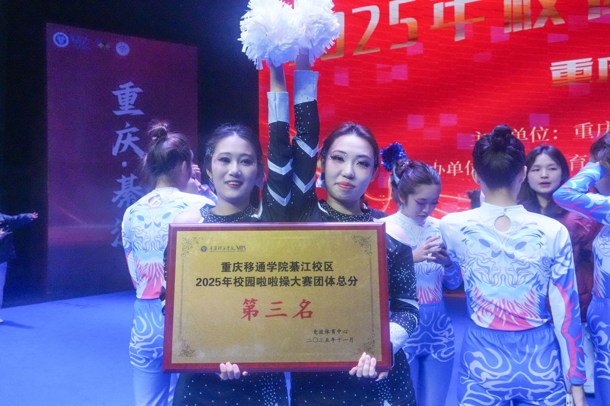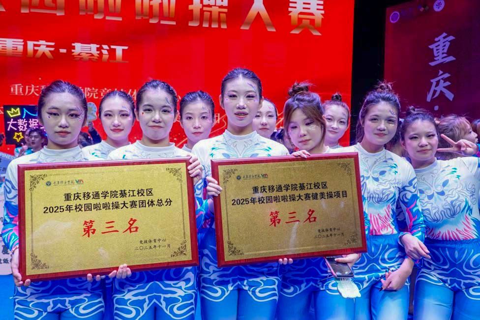 2025年11月19日,重庆移通学院綦江校区2025年举办的校园健美操、啦啦操大赛上,计算机学院携集体花球、健美操及双人花球三支参赛队伍迎来荣耀的丰收时刻,在过去的数月里,队员们以高度的热情和毅力,全身心投入到紧张而高强度的备战训练中。他们克服重重困难与挑战,以信念为翼,最终在赛场上璀璨绽放,成功斩获团体总成绩第三名、双人花球第五名、健美操第三名、集体花球第六名的优异战绩。这份沉甸甸的荣誉,为他们的辛勤付出呈上闪耀的徽章。