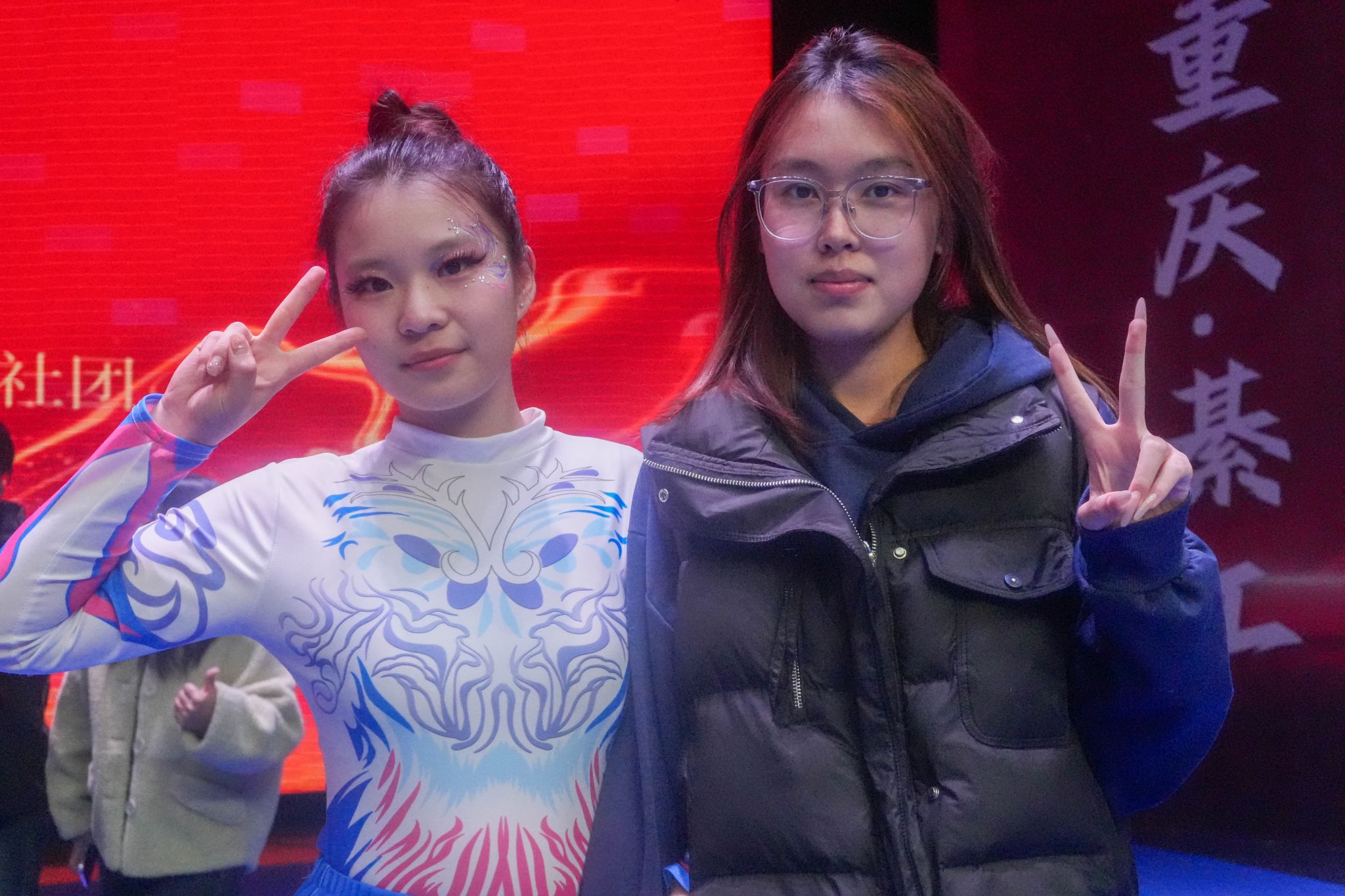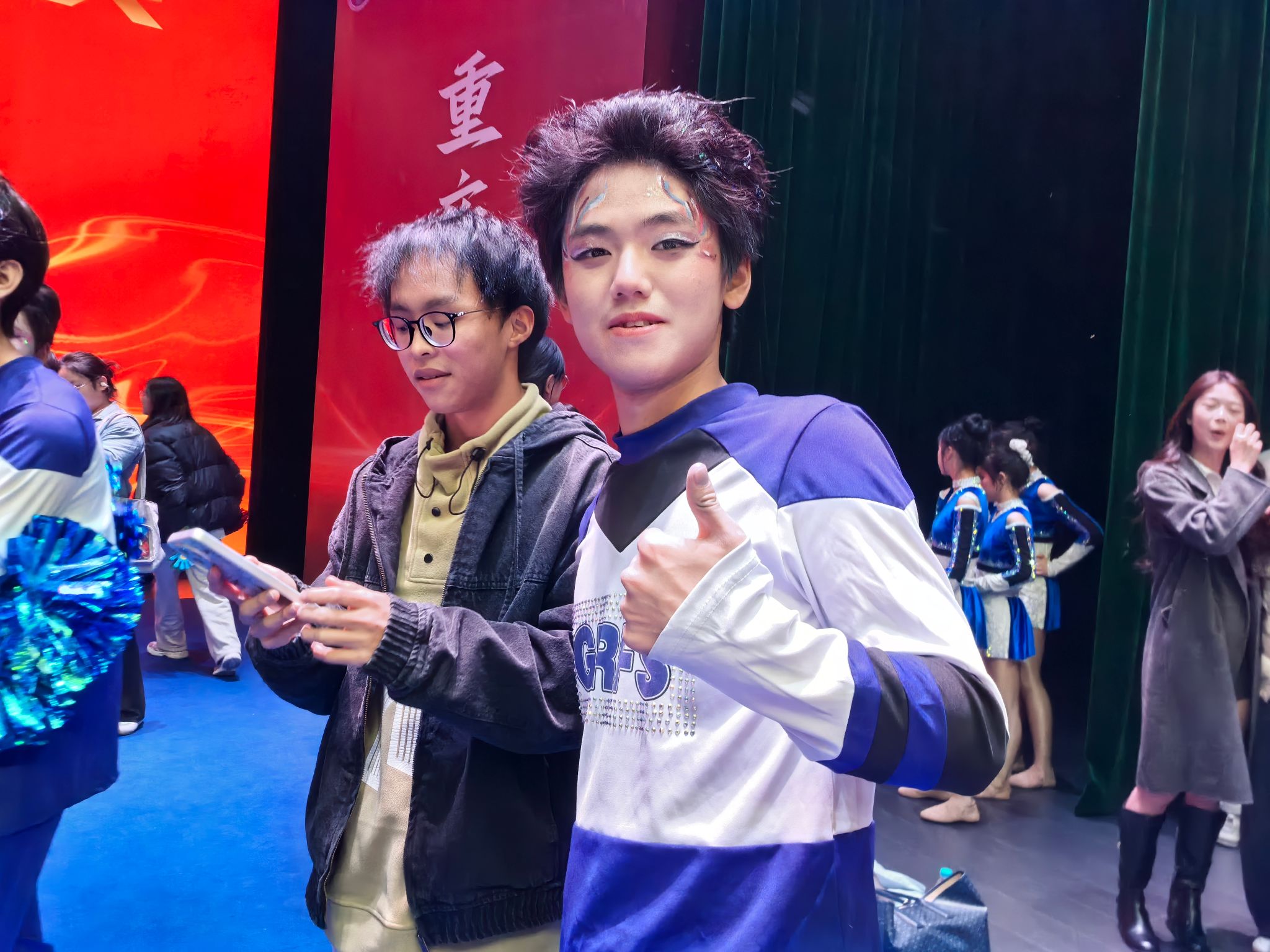 赛后专访中,队员们的心声真挚动人。双人花球队员李曦柔坦言,大三学业压力下,她们只能挤出行课间隙、周末碎片时间加练,刚结束专业课便奔赴排练厅,深夜打磨动作,精准舞姿与默契背后是平衡学业与比赛的艰辛。集体花球领队陈芋萱、唐真分享,队伍从零起步,队员多无基础,需从手位、步伐教起,熬夜讨论编排成常态,而队员们在舞台上的蜕变让所有辛苦都值得,更让大家懂得团队力量在于共同拼搏。大一新生杨艺洁则感恩成长,初入团队时的陌生忐忑,在学姐们的耐心带领与鼓励下消散,一个多月的训练累却充实,团队的包容与陪伴让她实现从懵懂新生到赛场舞者的蜕变,读懂了坚持与团结的意义。