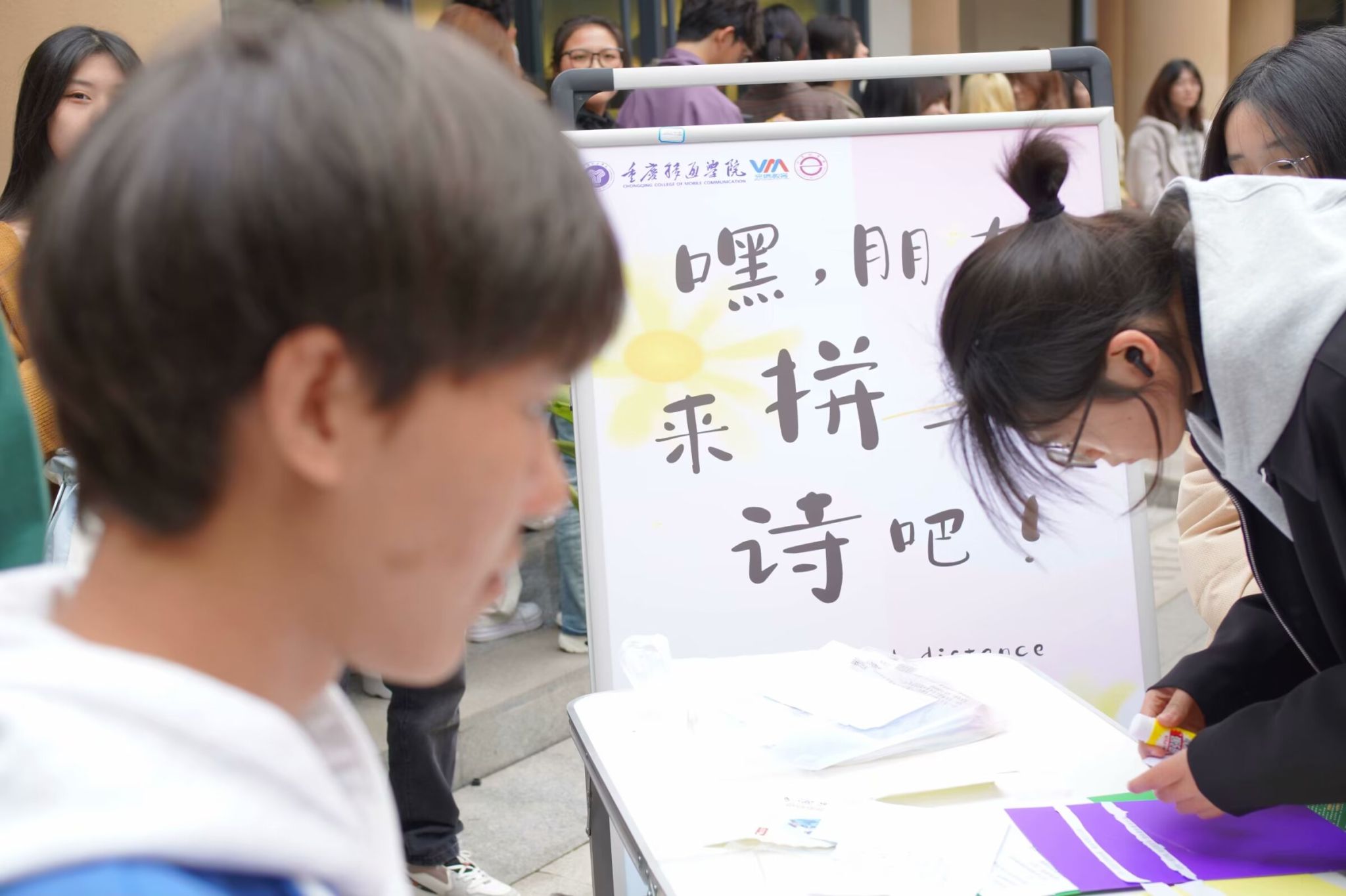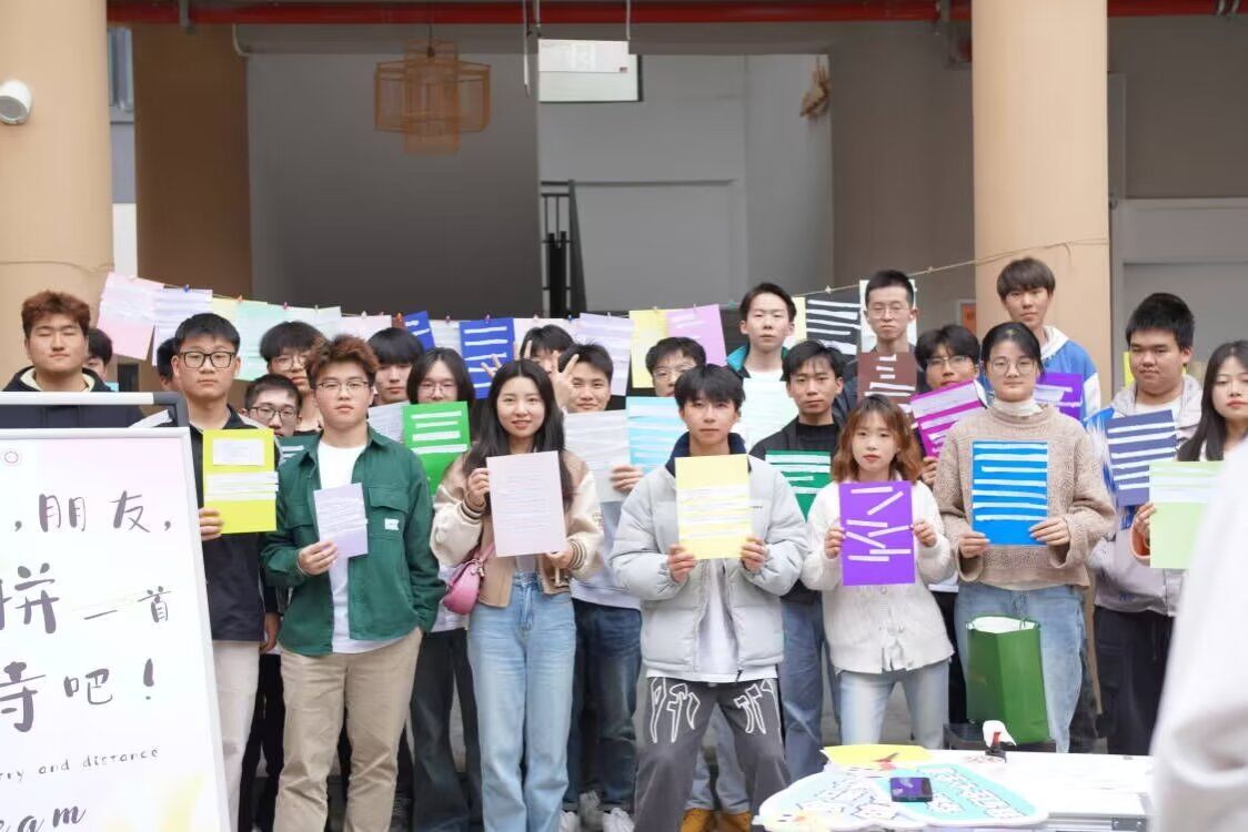 计算机学院于2024年3月15日14:00-16:00在观云书院中庭举办了一场别开生面的诗词创作活动——“嘿,朋友,来拼一首诗吧!”。 本次活动旨在丰富校园文化生活,激发同学们对诗词的兴趣,提升同学们的综合素质,引导树立文化自信,领略古代文人的雄心壮志,展望青年的壮阔未来。活动一经发布,各个年级的同学都积极参与,在诗词重造中,充分的发挥了他们的创造力和想象力。