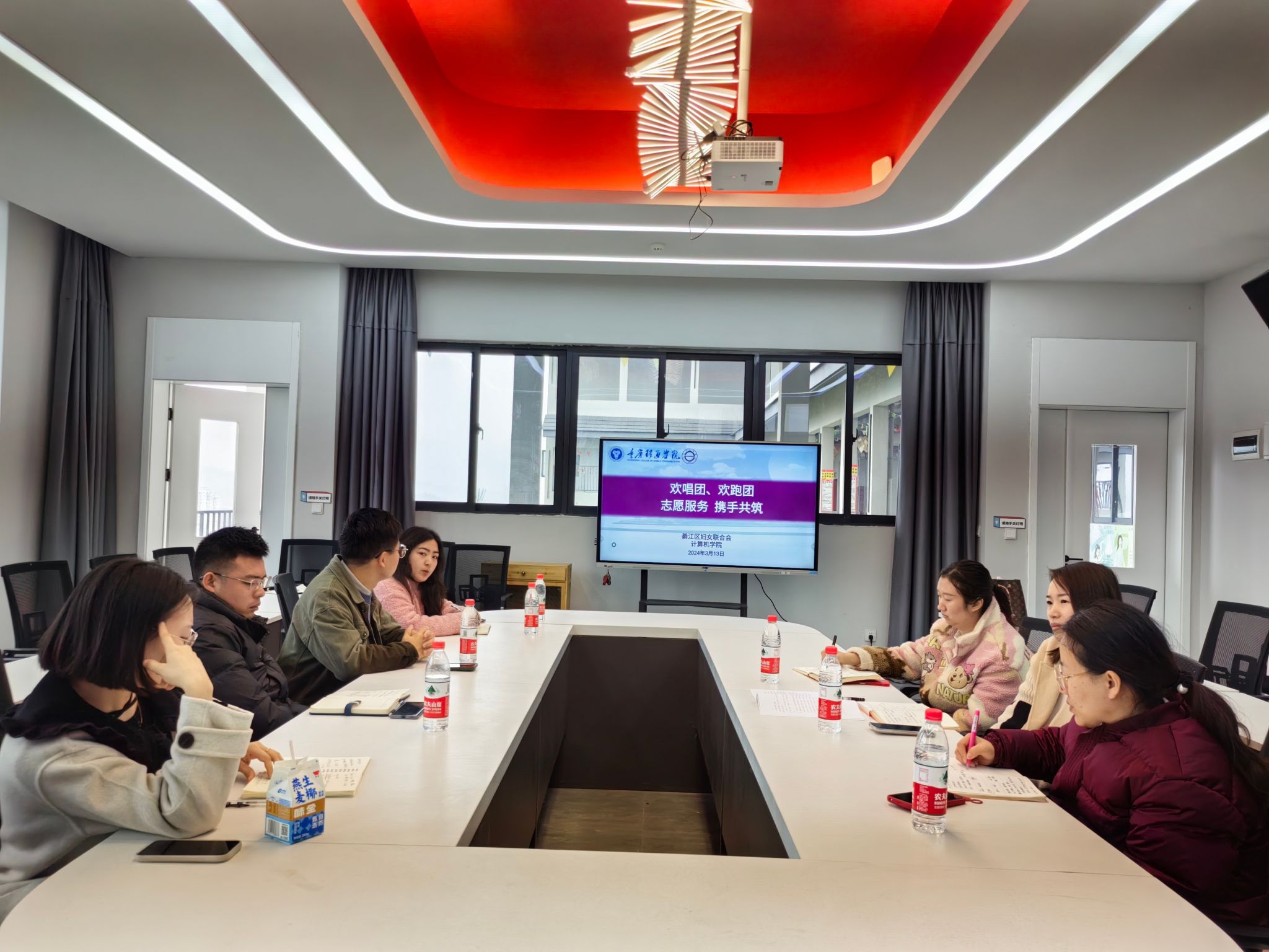 为响应号召,计算机学院与綦江区妇女联合会于2024年3月13日在地心会议室,围绕“渝好”欢唱团与欢跑团关爱服务项目举行了关于共建志愿阵地的深入洽谈会。此次会议得到了双方的高度重视和积极参与,綦江区妇联副主席杨茜、妇联家儿部夏宗佼、张靖怡,以及计算机学院学工副院长周俊、团总支书记张雄、艺术版块指导老师杨桂华、体育版块指导老师黄渝真、宣传版块指导老师彭兰萱等人均出席了会议。双方就如何更好地开展志愿服务活动、推动资源共享和优势互补等问题进行了深入讨论,以期达成更多实质性的合作成果。