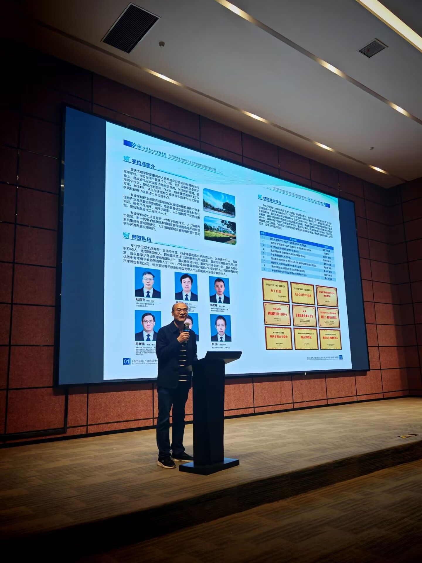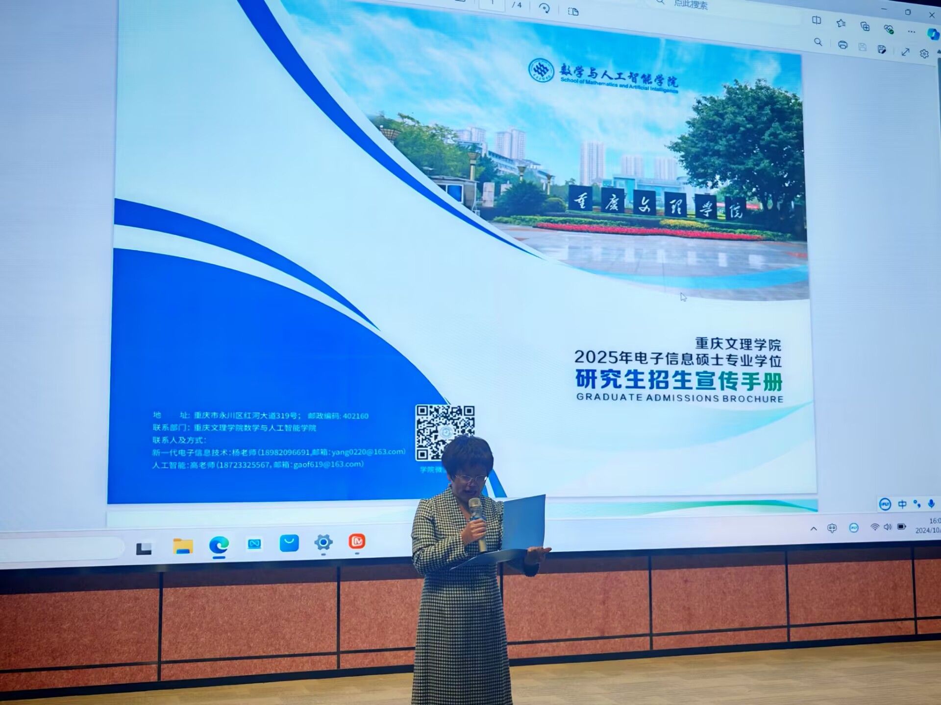随后重庆文理学院的高峰老师向在场的师生们介绍了重庆文理学院的学位点、师资力量、学科科研平台、学科研究与应用、学制学习方式、奖助政策等情况,展示了学校在培养高层次人才方面的独特优势。他表示,重庆文理学院一直致力于为学生提供优质的教育资源和全面的发展平台,希望更多的学生能够选择重庆文理学院作为自己的考研目标院校。