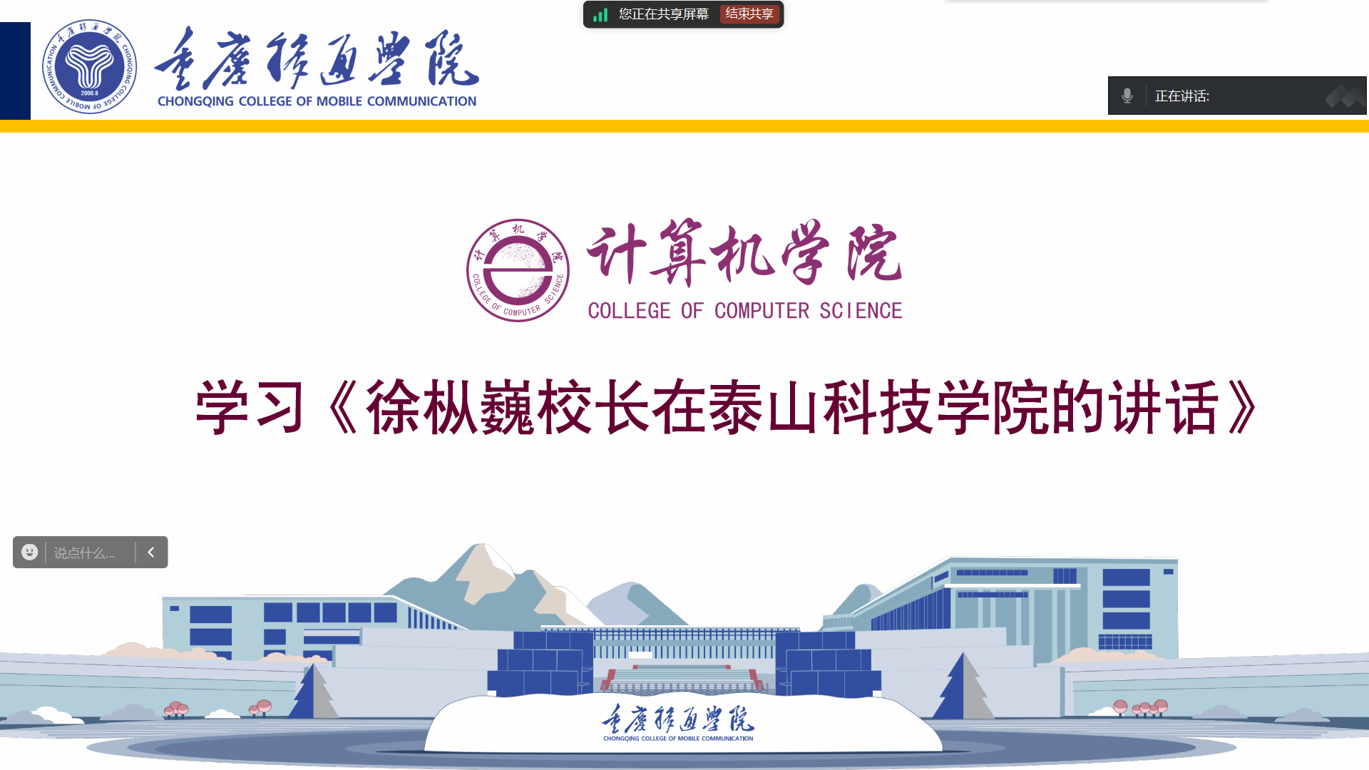 为贯彻落实《重庆移通学院关于学习徐枞巍校长讲话的通知》精神,深刻理解并实践“四位一体双院制”人才培养模式,以及学校“双一流之外的首选大学”的办学目标。2024年9月12日下午,计算机学院全院教职工在线上组织开展了《徐枞巍校长在泰山科技学院的讲话》的学习。