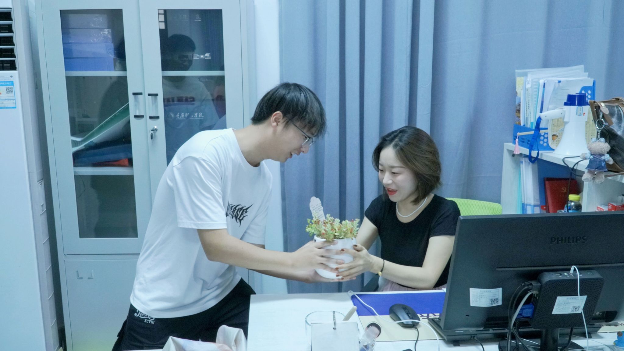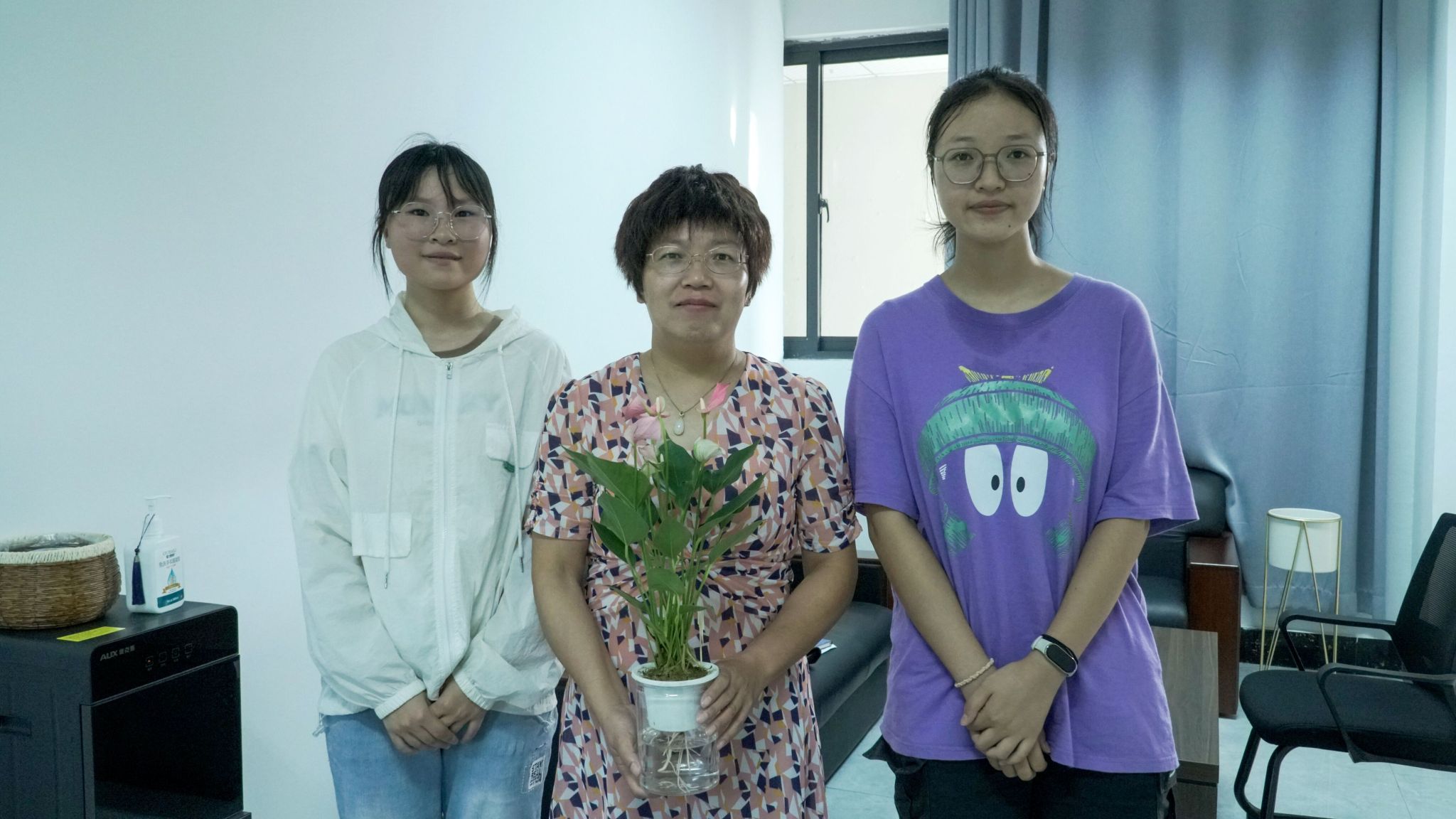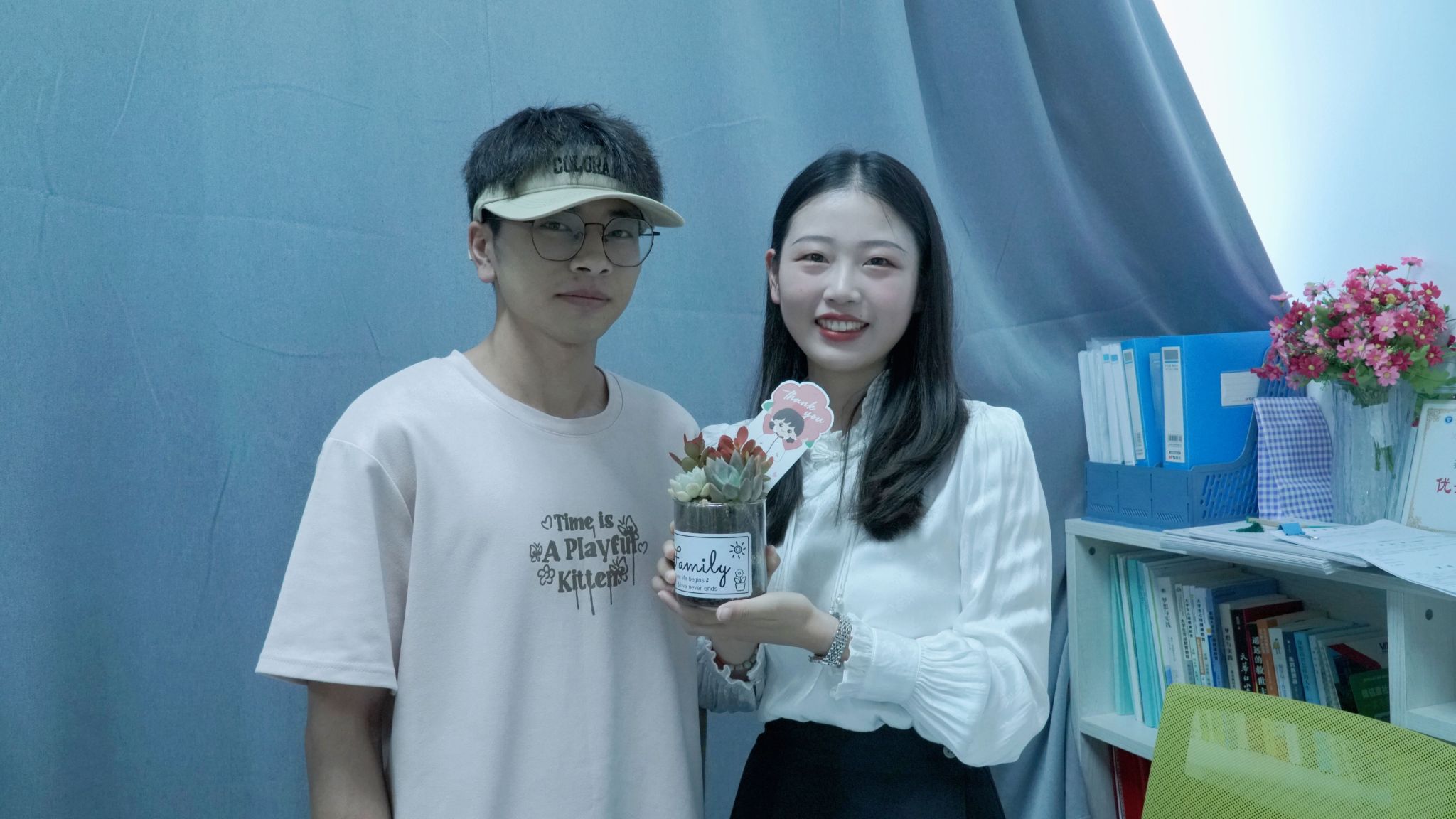 艳阳高照,同学们们一路上面带笑容,手捧盆栽,走向他们心中最敬爱的老师们。与此同时,一张张精美的贺卡也伴随着鲜花送到了向碧群副院长、周俊副院长等辅导员和教职工老师的手中。