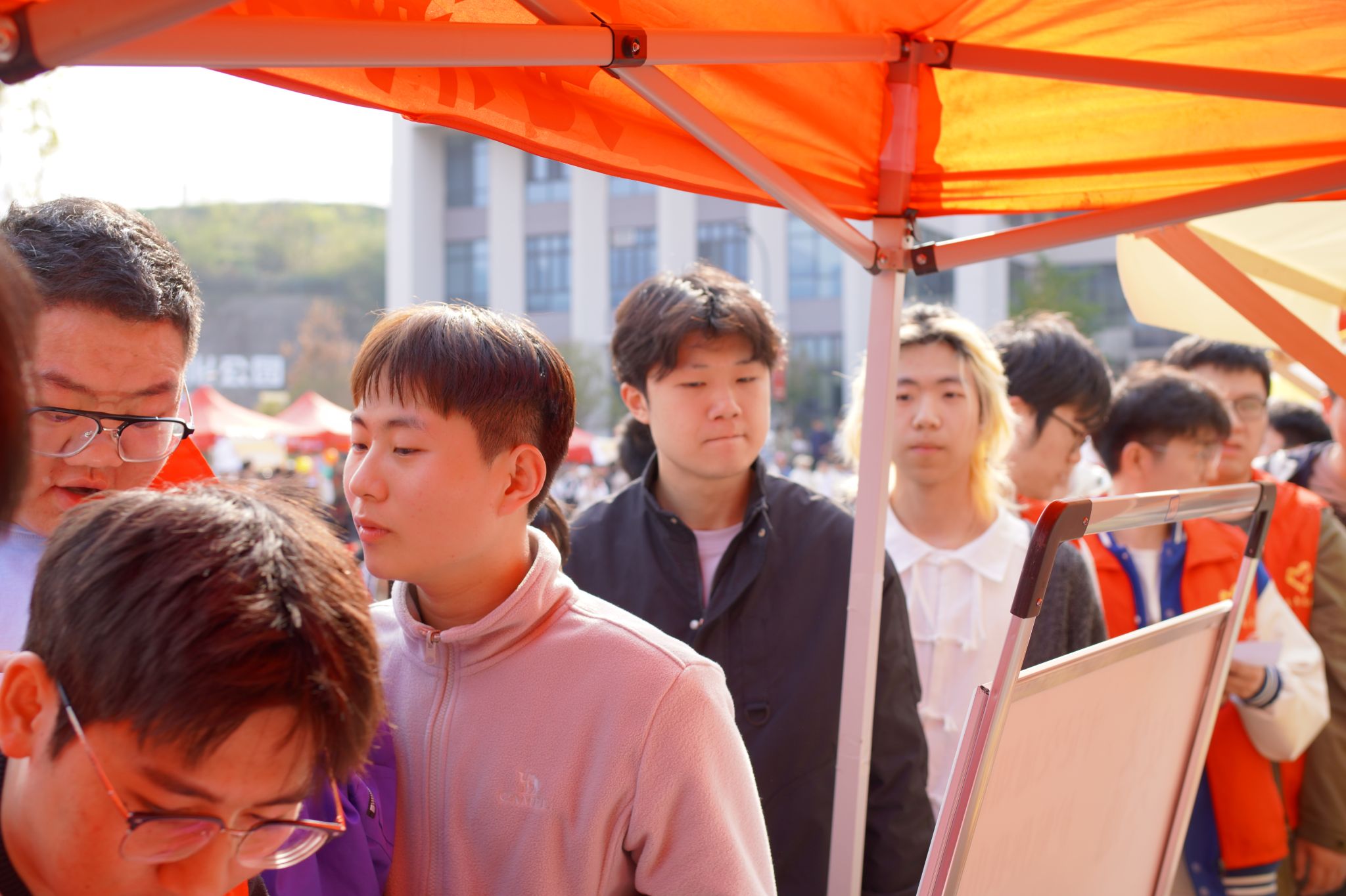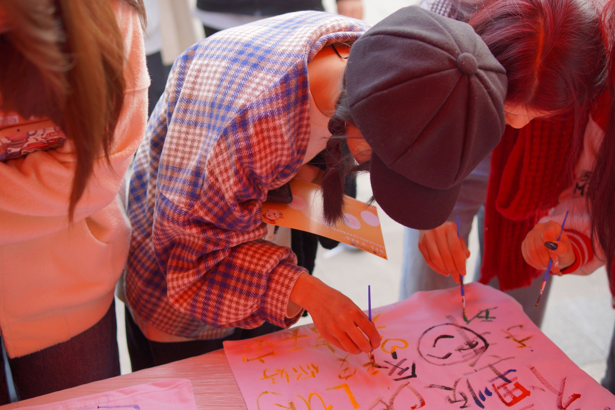 阳光洒在图书馆前广场,来自各学院的青年志愿者们汇聚一堂。“一院一摊位”的原则限制不住他们饱满的热情和无限的创意。有趣的绘画接龙、拒绝精神内耗的心灵交谈,欢乐的互动问答互动体验——不限形式,趣味性和吸引力共同拉满,构筑了一个青春充满朝气的文化集市。
