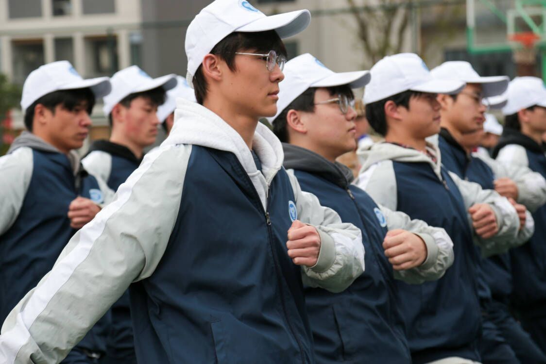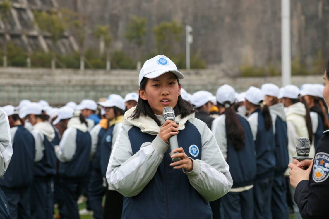 三月的春日,清风徐来,树梢轻摇,映衬着学校操场上人群攒动。军训教官有条不紊地指挥着队伍列队操练。整个操场回荡着教官们有力而嘹亮的口令声,犹如一曲激昂的乐章,展现出严谨有序的军训场景。